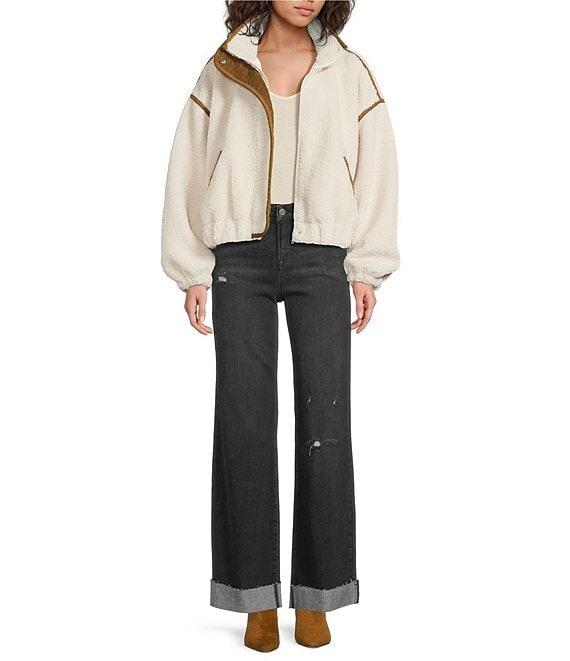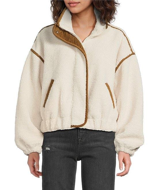 ELAN Teddy Long Sleeve Zip Front Bomber Jacket