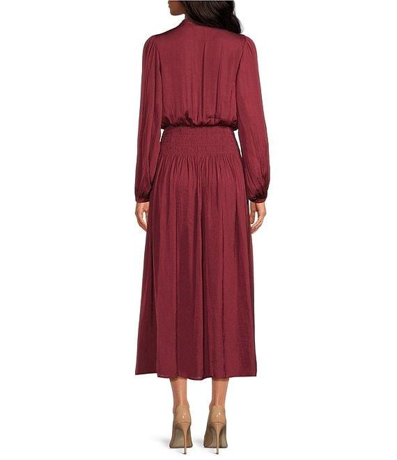ELAN V- Neck Long Sleeve Smock Waist Maxi Dress