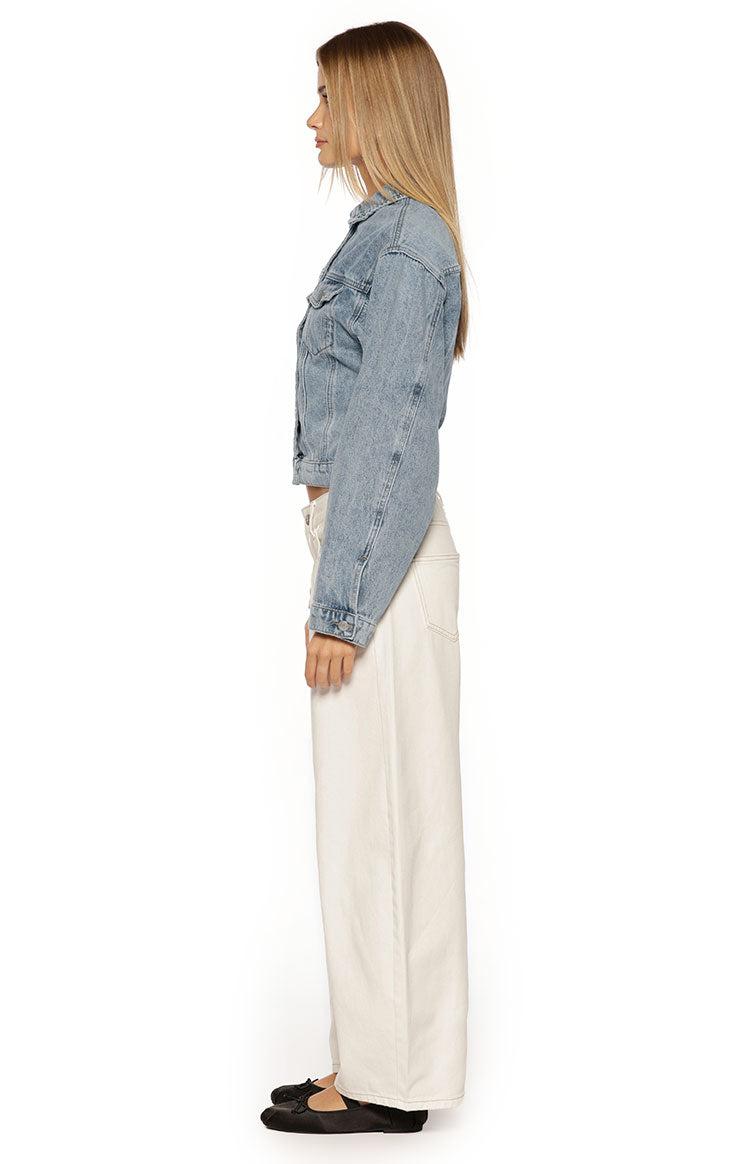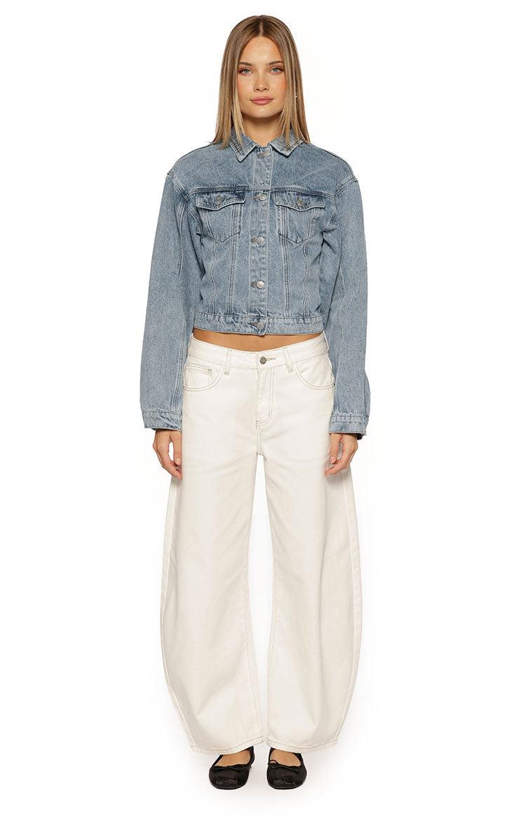Mid Wash Cinched Waist Denim Jacket How to style: A modern update on a timeless staple, our Elana Mid Wash Denim Jacket is designed to elevate your casual 'fits. This jacket features a unique fitted bodice that cinches the waist, balanced by dramatic balloon sleeves for a fashion-forward silhouette. Layer it over a mini dress or pair it with jeans for an effortless, put-together look! Features: Mid wash denim Fitted bodice Balloon sleeves Hip length Full length sleeves Perfect for casual outings, brunch, and everyday style!