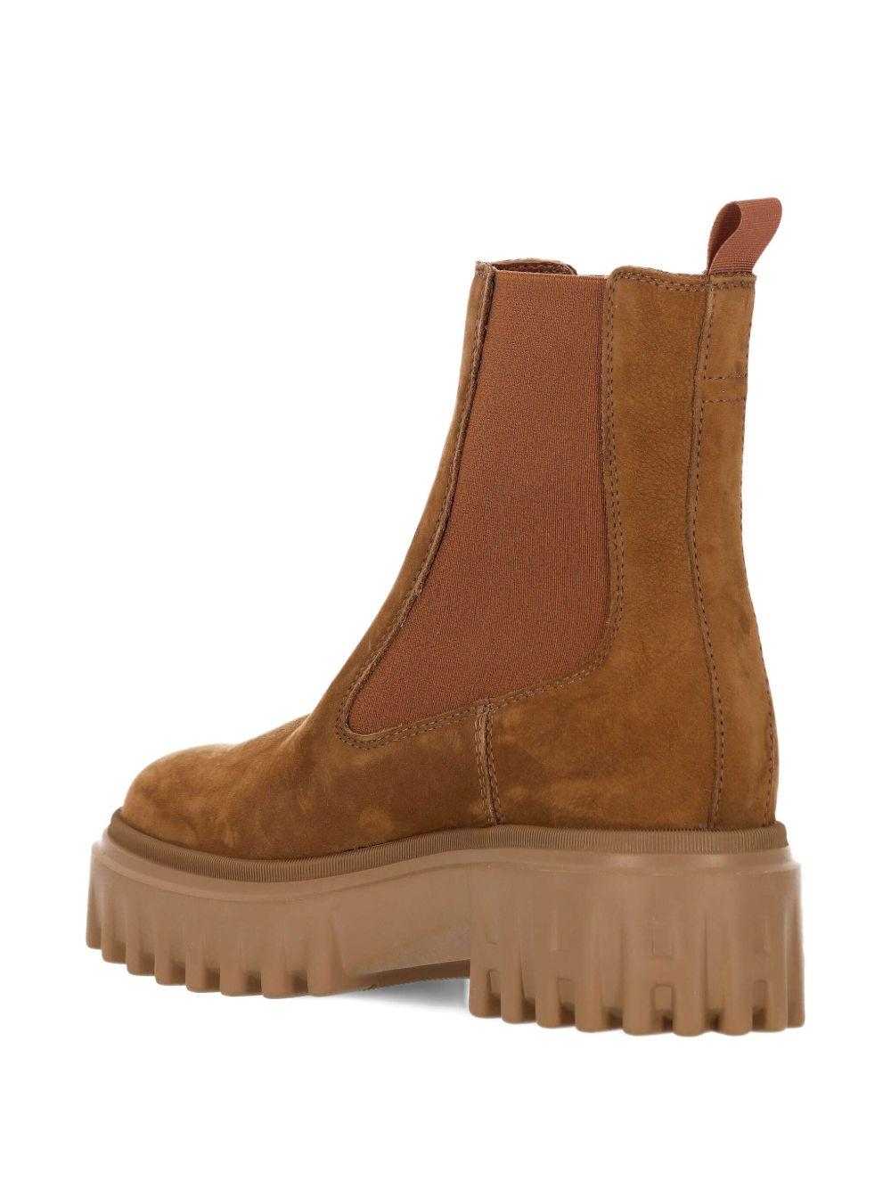 Hogan elastic-panel platform boots | Brown | light brown | suede upper | platform sole | ridged rubber sole | elastic side panels | pull tab | Calf Suede/Polyamide/Spandex/Elastane/Sheepskin/Rubber | Ankle Boots | Boots | Shoes | Women