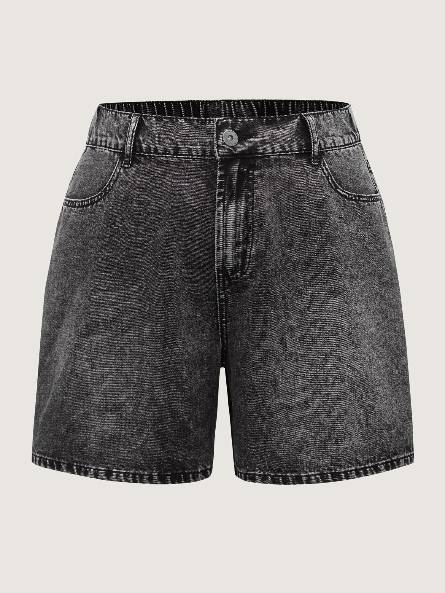 Elastic Waistband Classic Cut Denim Shorts Female