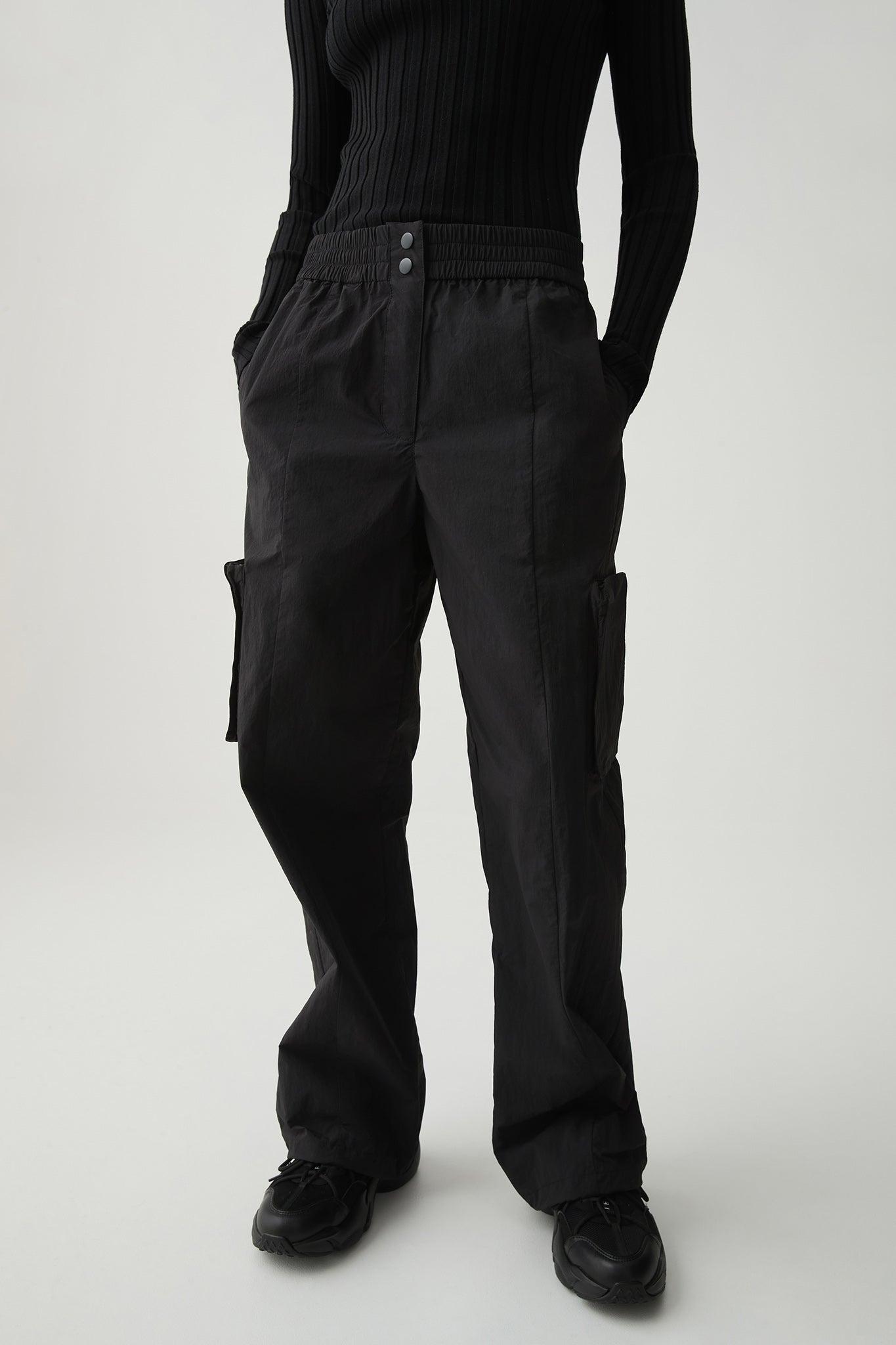 PRODUCT DETAILS Women’s cargo pants Parachute fit Stretch waist for easy wearing Front zip fly with snap Side pockets Utility pocket with zips Side logo tab Adjustable hem SIZE AND FIT Helena wears a size 8/S and is 178cm in height FABRICATION 100% Recycled Nylon