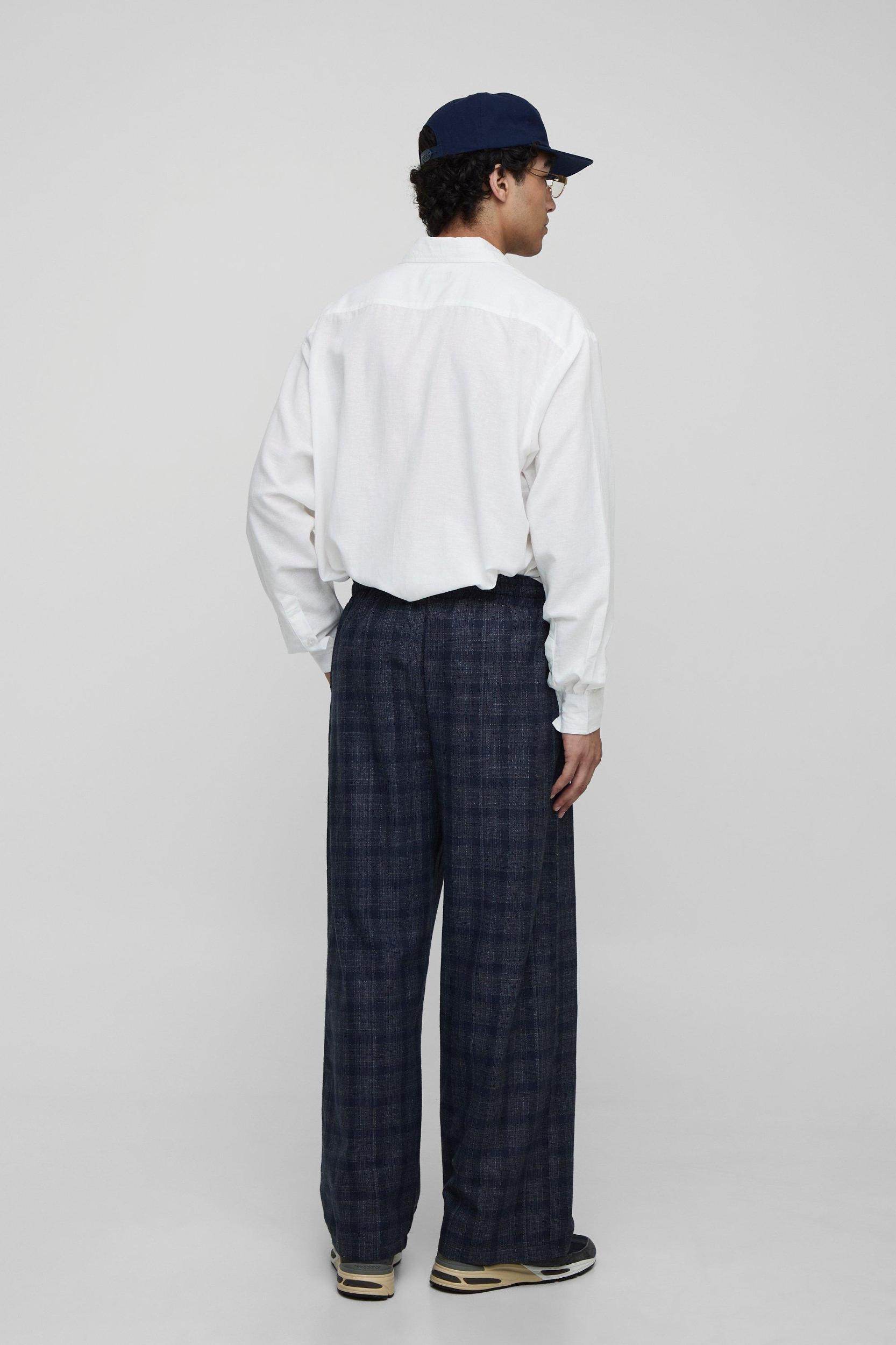 Elasticated Waistband Wide Leg Check Trousers | boohooMAN USA