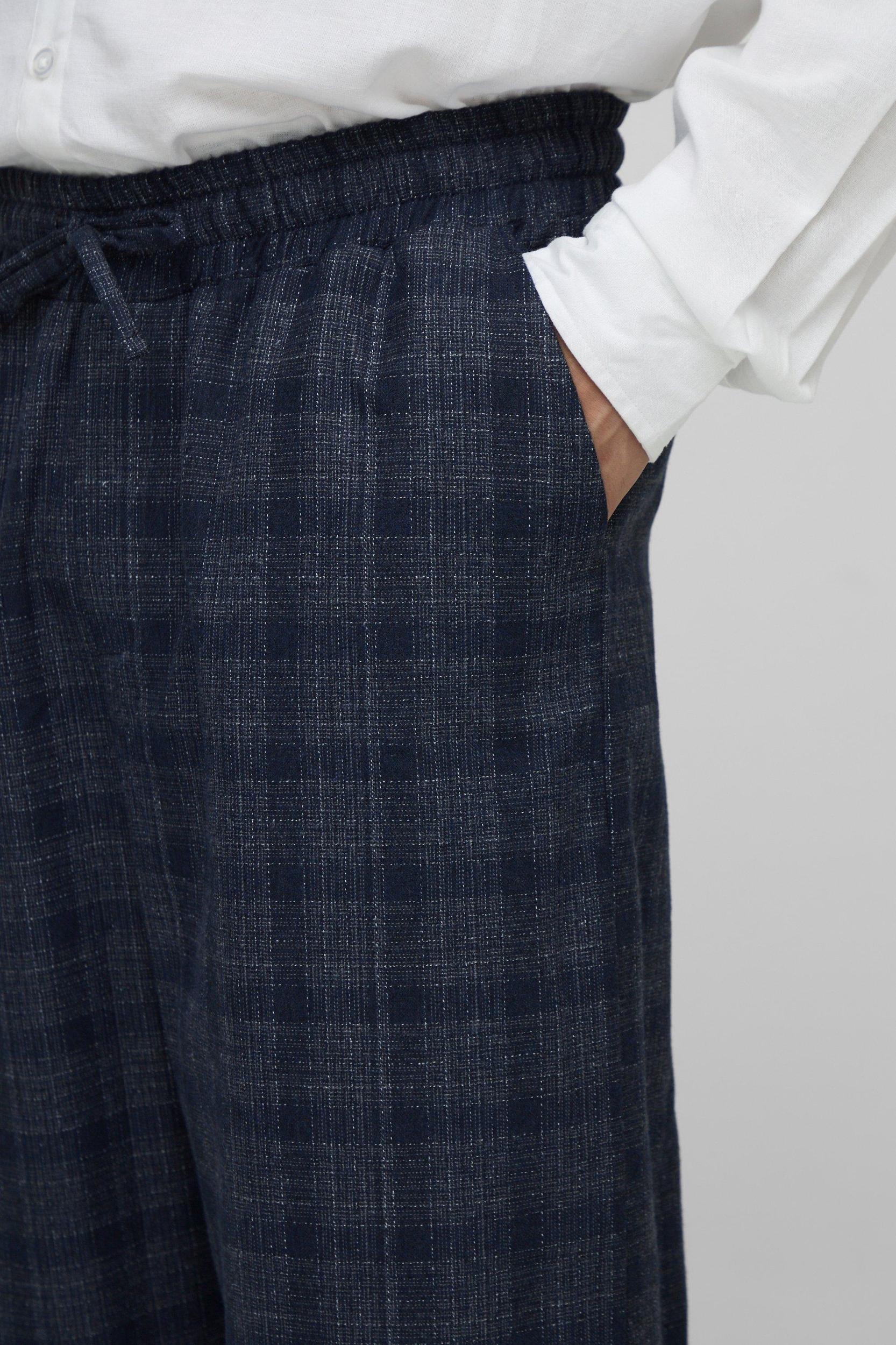 Elasticated Waistband Wide Leg Check Trousers | boohooMAN USA Product Image