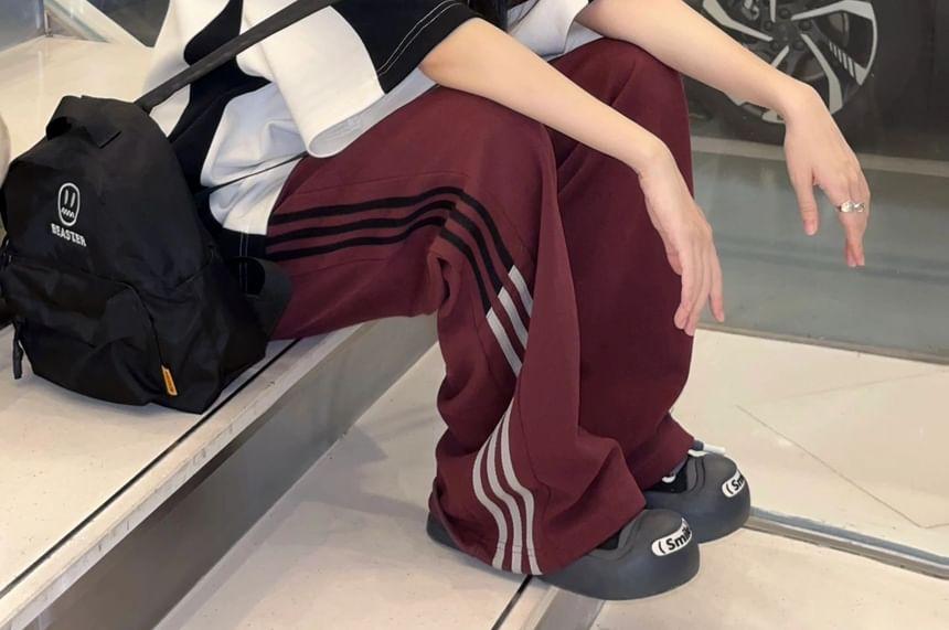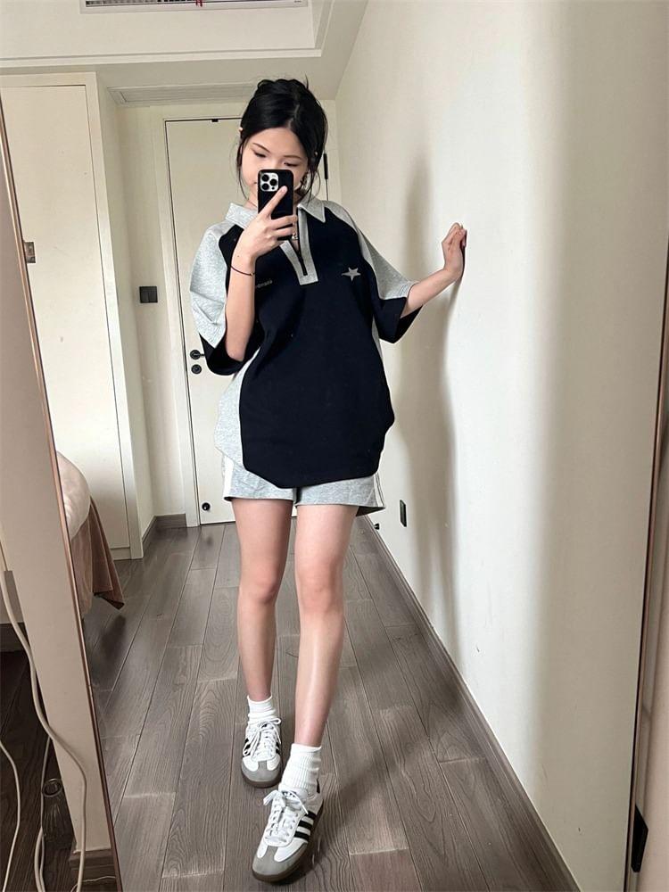 Elbow-Sleeve Collar Lettering Star Print Oversized T-Shirt