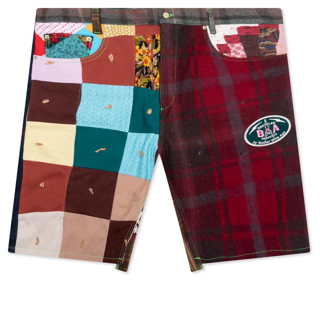 The Better With Age Eleanor Shorts are crafted from vintage blankets sourced from around the world, ensuring that each pair is completely unique. Due to the use of vintage materials, every item will feature different patterns and colors, with signs of age such as stains, blemishes, or wear. These imperfections reflect the brand's dedication to sustainability. No two pairs are alike, making them a one-of-a-kind addition to your wardrobe. THIS PRODUCT DOES NOT QUALIFY FOR DISCOUNTS OR SPECIAL PROMOTIONS, ALL SALES ARE FINAL. One-of-one design Vintage materials May display stains, blemishes, wear, or general signs of age. Button-fly closure Belt loops Style No: BWATSEL-MUL-10