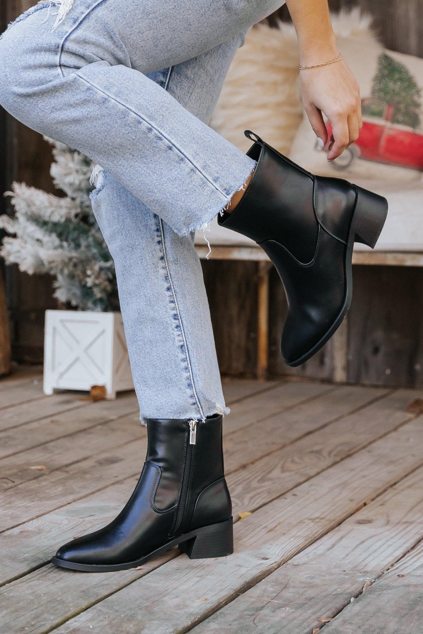 Step out in style with the Elena Black Heeled Bootie, a perfect blend of sophistication and comfort! This versatile bootie is designed to elevate any outfit, making it a must-have addition to your wardrobe. Featuring a convenient pull-on tab, these booties are easy to wear, ensuring you can slip them on and off with ease. The stylish block heel provides a comfortable lift, making it ideal for all-day wear while adding a touch of elegance to your look. It's also available in Beige and Tan. Pair them with dresses, skirts, or your favorite denim for a chic, polished look that transitions seamlessly from day to night.