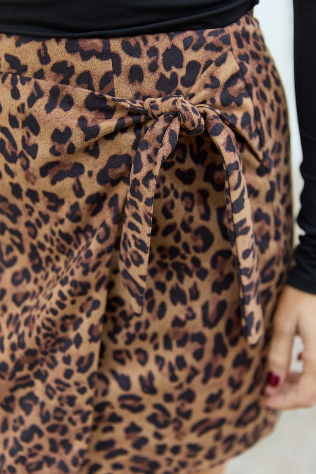 Elena Leopard Print Faux Leather Wrap Skirt