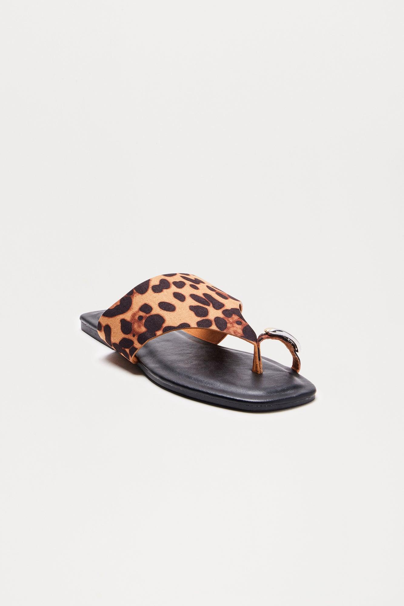 Available In Black, Leopard And Oatmeal. Flat Sandals Hardware Toe Detail Square Toe Flat Heel Imported