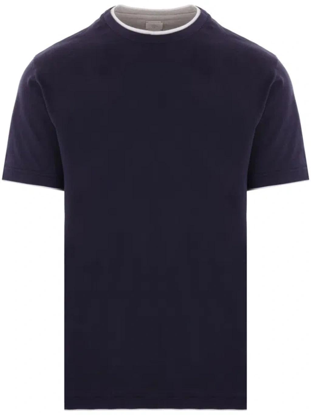 ELEVENTY Navy Blue Cotton Jersey Texture T-shirt