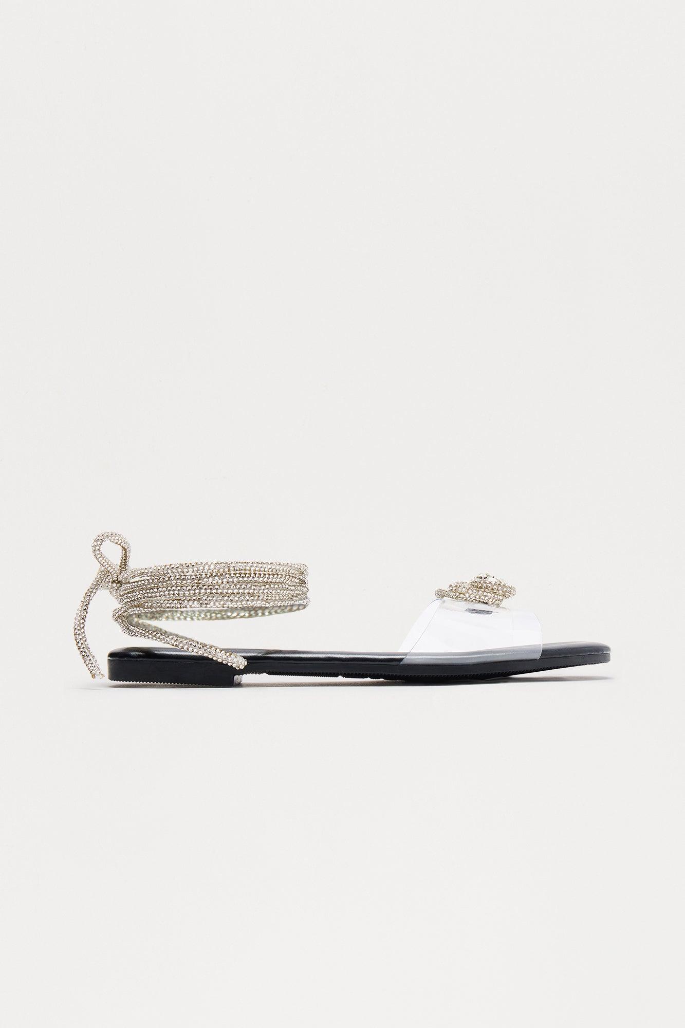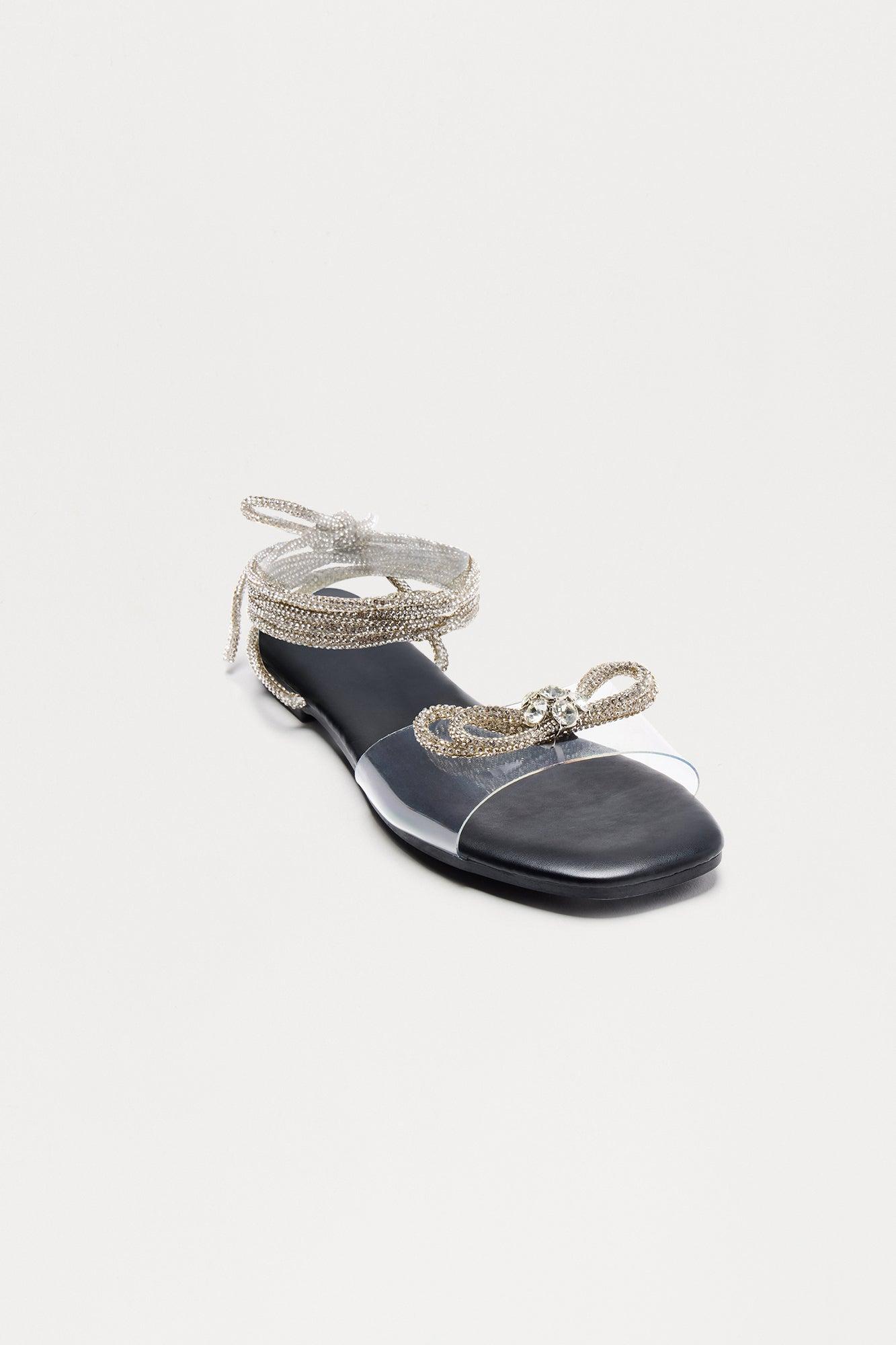 Elian Rhinestone Bow Wrap Up Sandals - Black