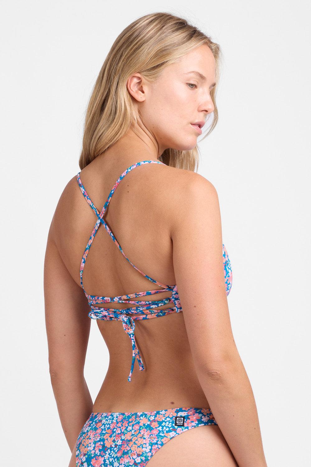 A triangle bikini top engineered to offer added ultimate support and surfability, the Eliana is a great swimsuit top for those with a larger bust or who prefer more coverage. Feel secure and covered with these fuller coverage front and a lace tie back. Great for medium to high-impact activities. Proudly made with our stylish yet athletic Recycled SurfTec fabric. Features: Good for: Surfing, paddling, beach, lifestyle Tie-Back Rouching for more coverage Removable Pads Medium-full coverage Coverage 4 Medium-high impact 4 Lined for maximum privacy Chlorine Resistant True to Size Fabric Composition: Recycled SurfTec fabric UPF 50+ 74% Recycled Nylon 26% Elastane Care Instructions: Hand wash cold Hang dry Do not iron, dry clean or bleach