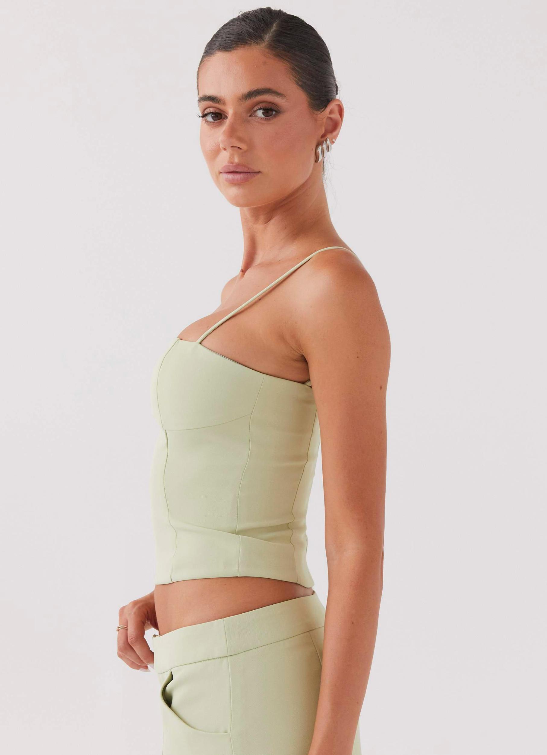 Peppermayo Exclusive Introducing the Eliana Crop Top – a sleek choice with a straight neckline and fitted silhouette. For the perfect ensemble, pair it with the Eliana Suit Mini Skirt. This set is a standout choice for any occasion. Elevate your look with the Eliana set. - Crop top- Lined- Straight neckline- Back invisible zipper- Adjustable straps- Fitted silhouette- 96% Polyester, 4% Spandex Size AU 8 garment measurements:Waist 68cmLength 30.5cmBust 78cm Ashton wears size US 4 (Small or AU 8 equivalent)