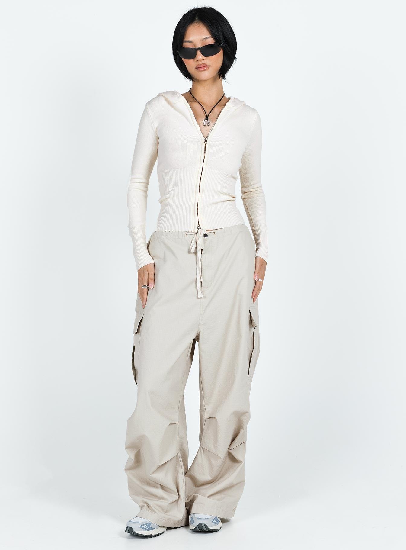 ASOS DESIGN knitted hoodie with circular hem in buttermilk