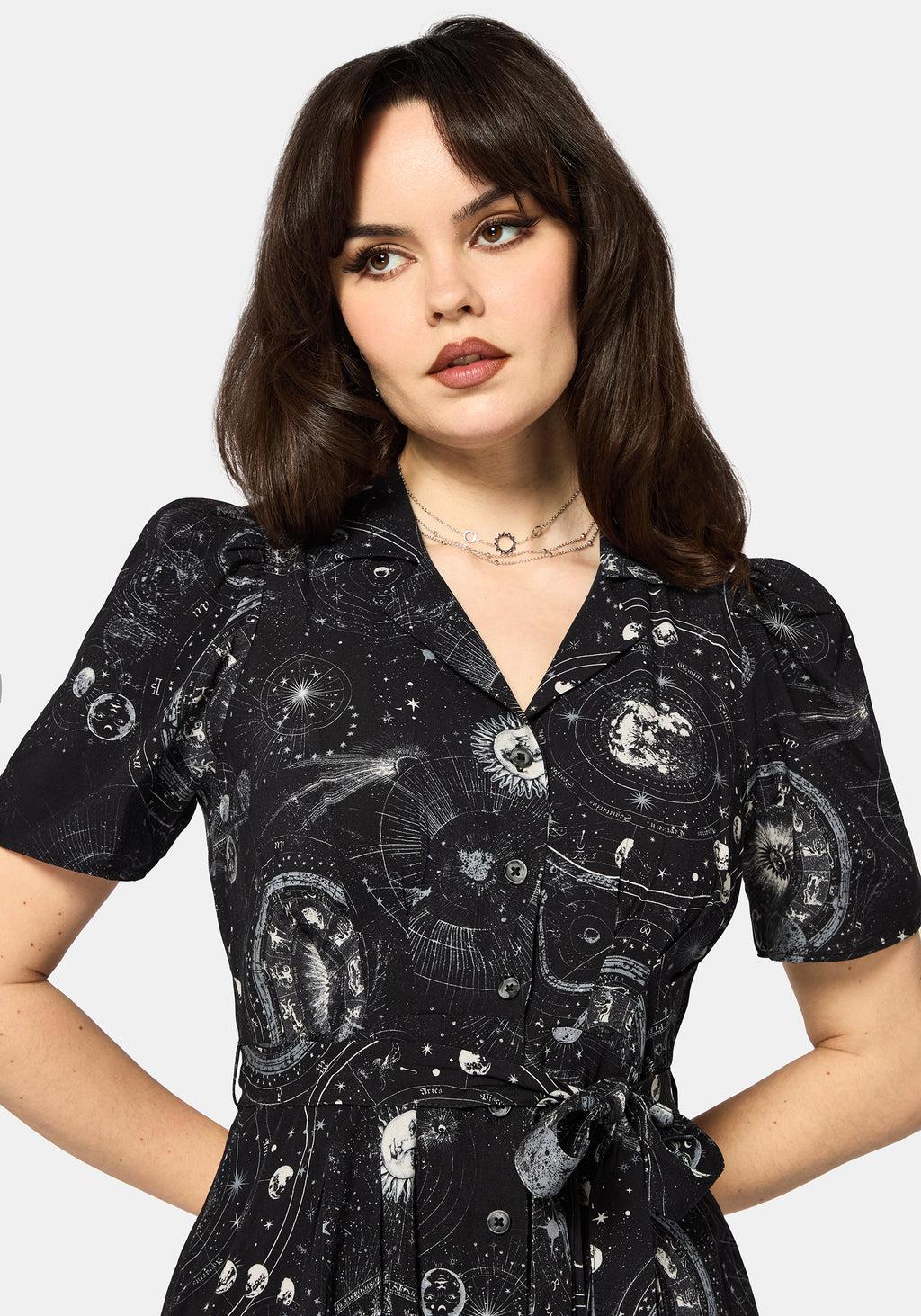 Elise Celestial Print Puff Sleeve Midaxi Shirt Dress