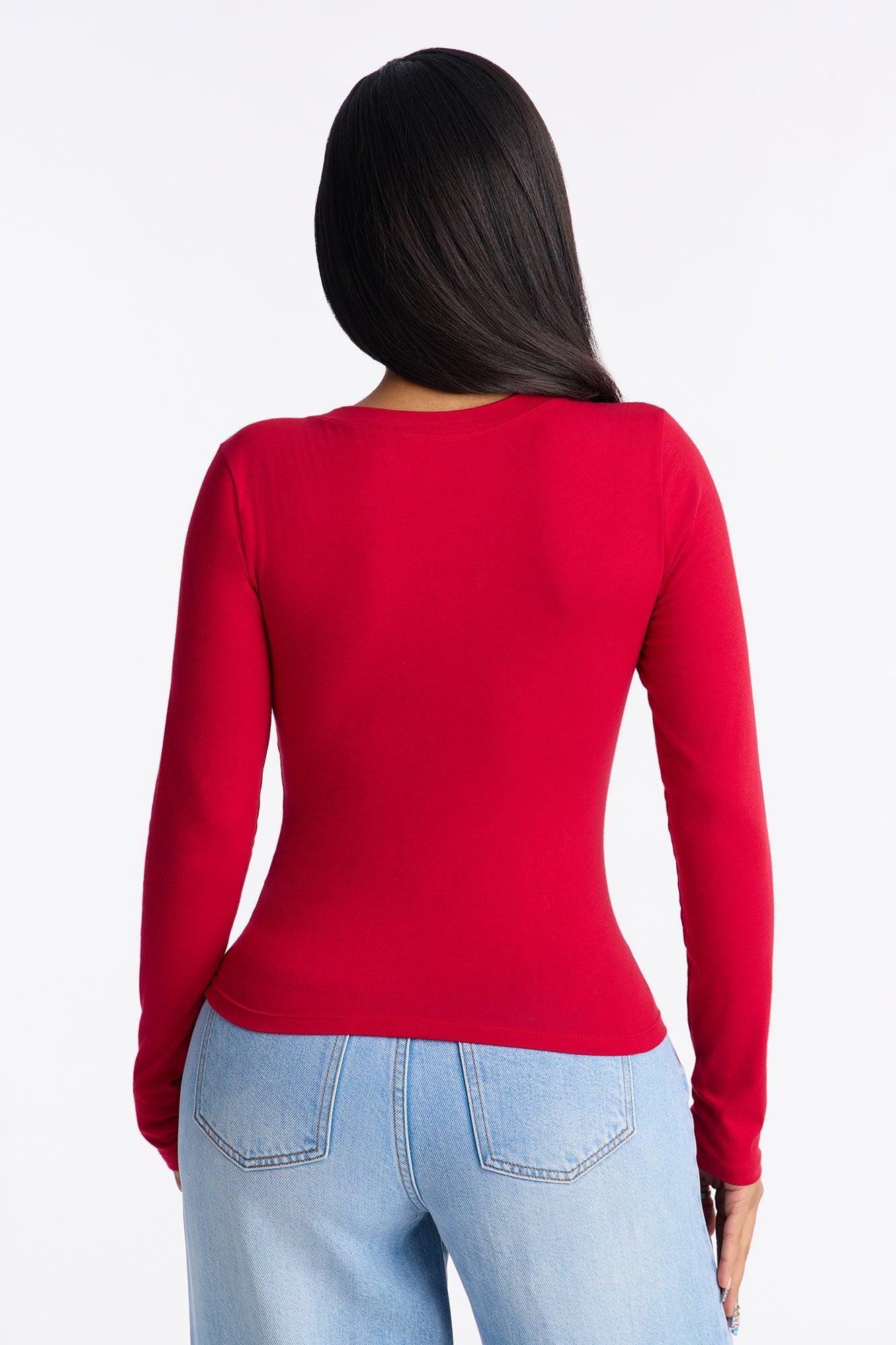 Elise Round Neck Long Sleeve Top - DarkRed Female