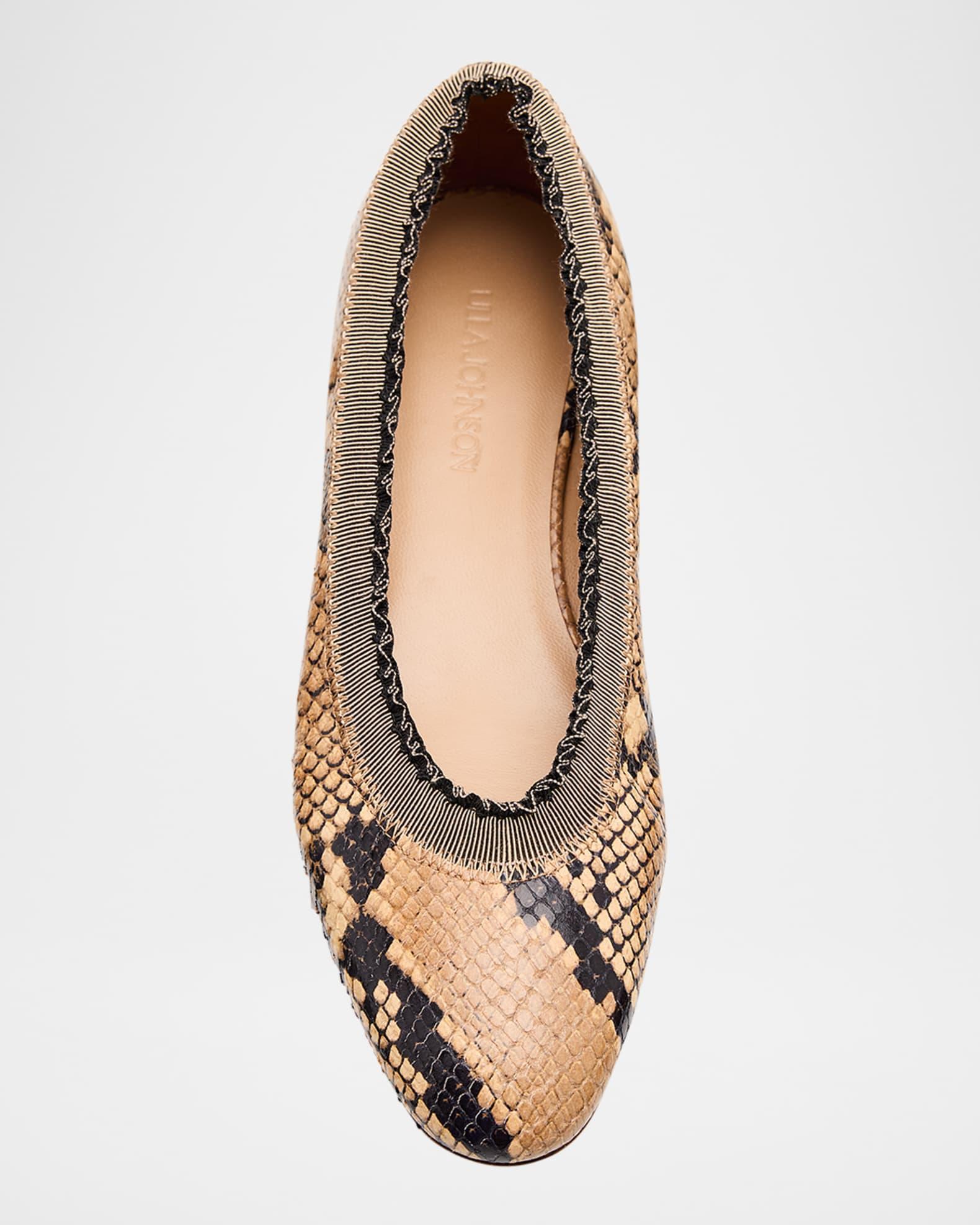 Elise Ruffle Snakeskin-Print Leather Ballet Flats