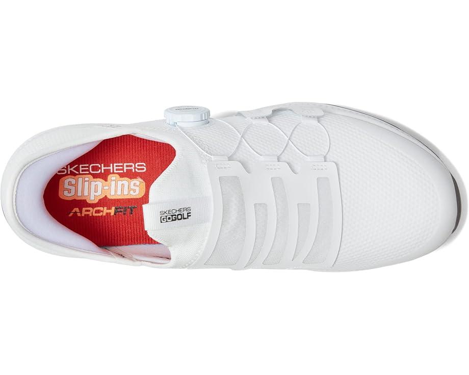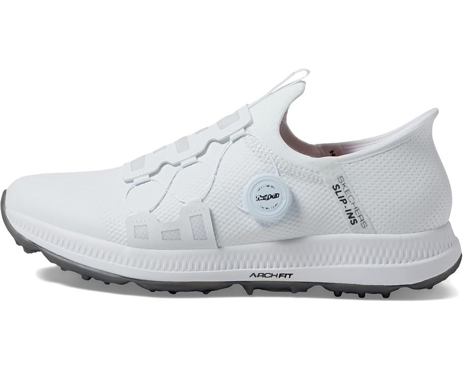 Handle the course with the best in comfort technologies wearing Skechers Hands Free Slip-ins® GO GOLF Elite 5 - Slip 'In. Designed with our exclusive Heel Pillow™. This waterproof golf shoe features a synthetic upper with a unique Twist Fit™ closure, removable Arch Fit® insole and a GRIPFLEX spikeless traction outsole.