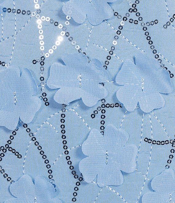 From Eliza J, this dress features: 3D flower scuba crepe fabrication Sheath silhouette V neckline Sleeveless Lined Zip back closure Approx. 50.5" length Polyester/spandex Dry clean Imported.