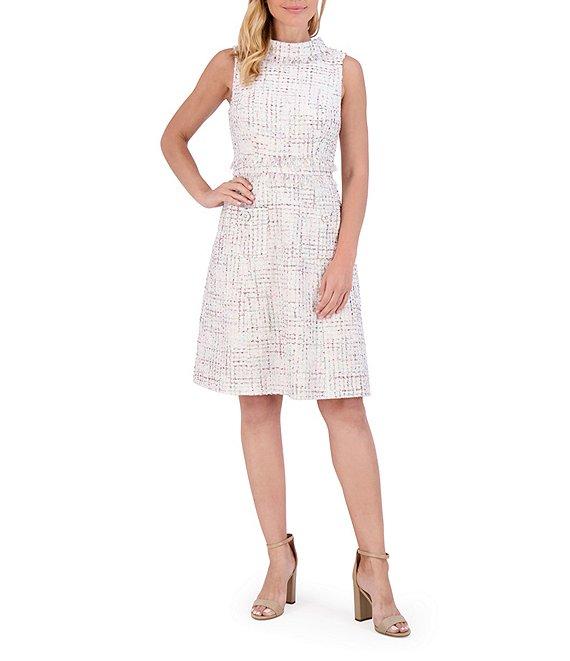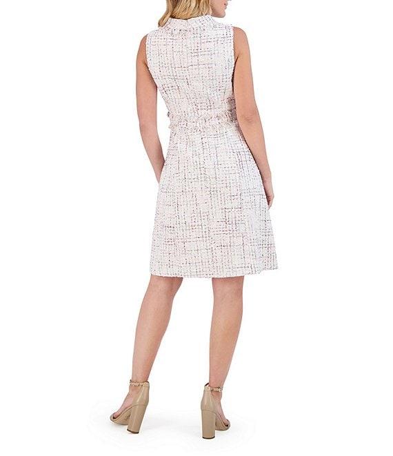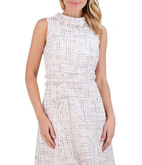 Eliza J Boucle Mock Neck Sleeveless Fringe Detail A-Line Mini Dress
