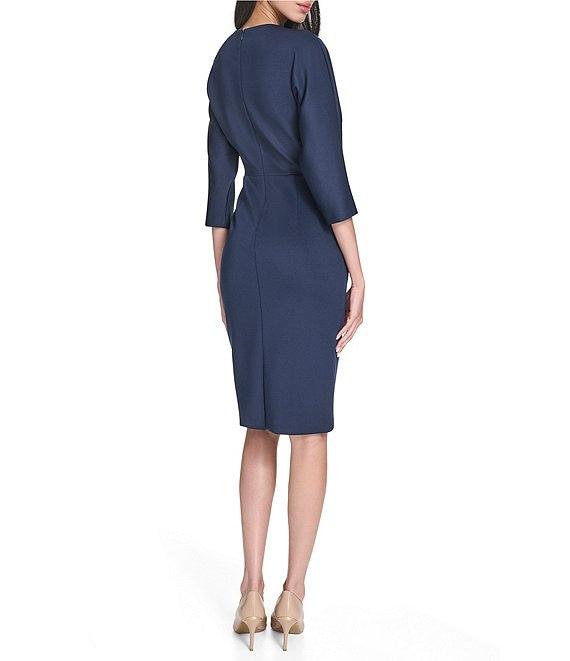 Eliza J Long Sleeve V Neck Scuba Crepe Knee Length Dress
