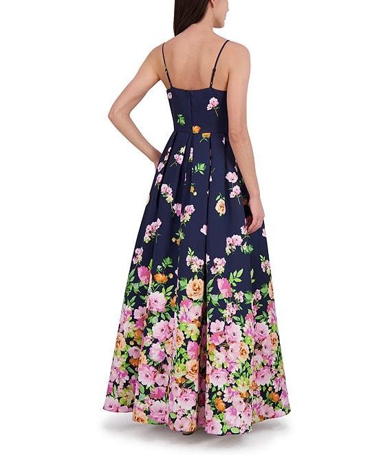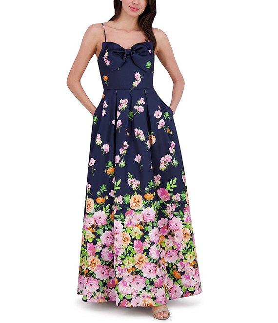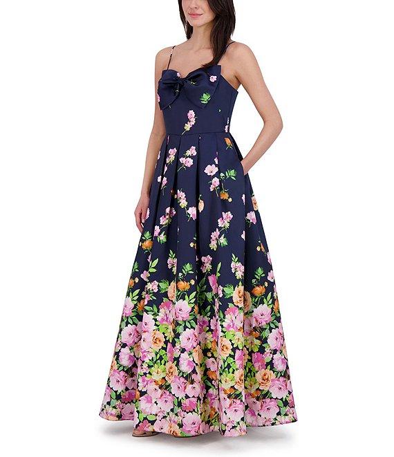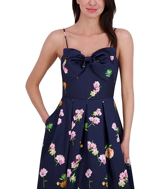 Eliza J Mikado Floral Print Sweetheart Neck Sleeveless Bow A-Line Gown