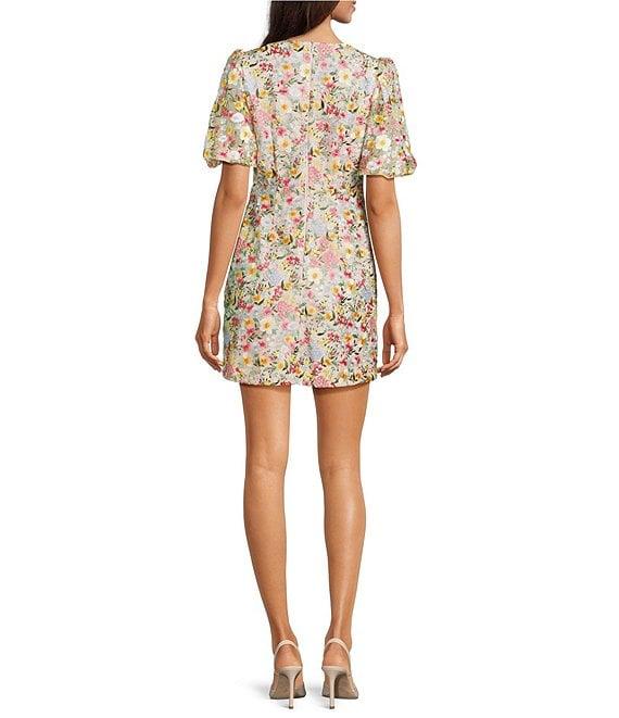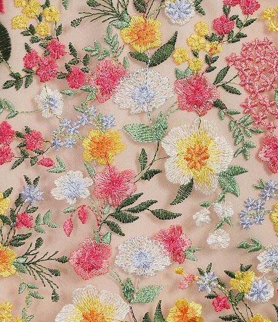 From Eliza J Petite, this dress features: Embroidered mesh fabrication V-neckline Short sleeve Puff sleeve Lined Fit and flare silhouette Functional pockets Center back zipper closure Approx. 34.5" in length Nylon Hand wash/dry flat Imported.