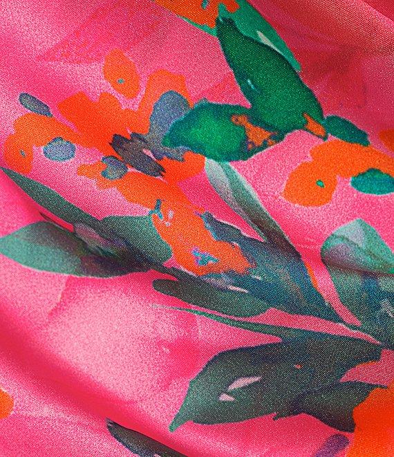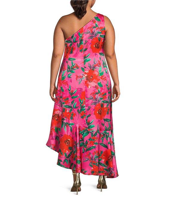 Eliza J Plus Size One Shoulder Sleeveless Ruffle Hem Floral Satin Midi Dress