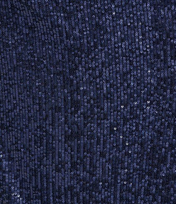 From Eliza J Plus, this dress features: Sequin fabrication Asymmetrical neckline Long sleeves Side tucks Skirt slit Lined Center back zipper closure Approx. 61" in length Polyester/spandex Dry clean Imported.