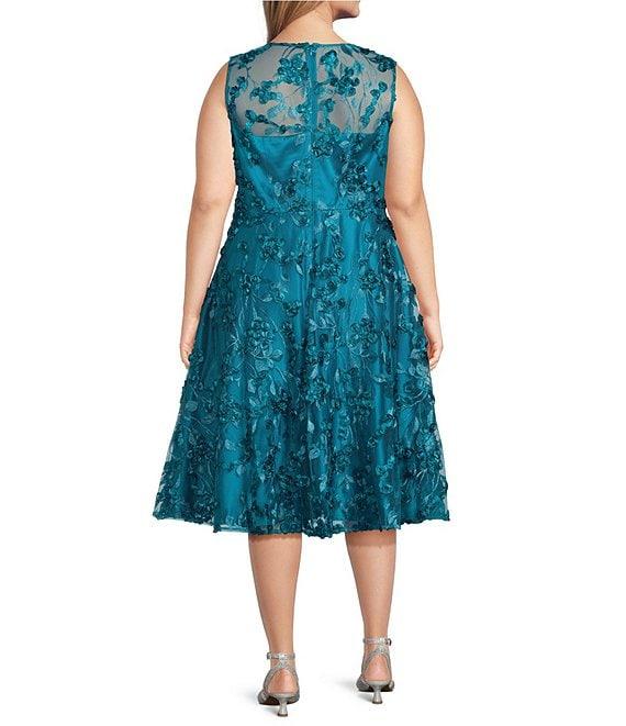 Eliza J Plus Size V-Neck 3D Floral Fit And Flare Midi Dress