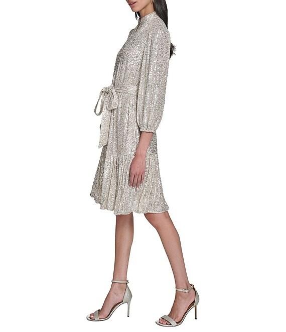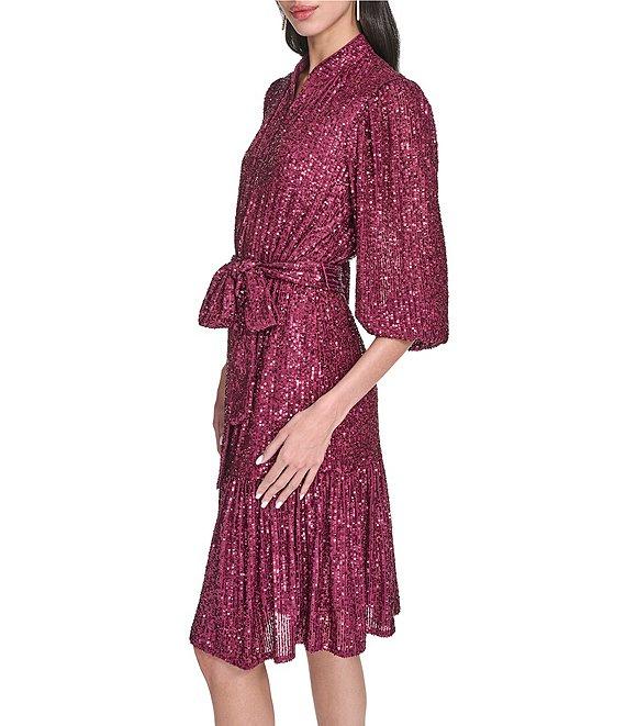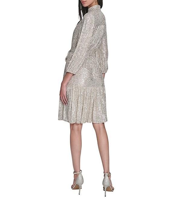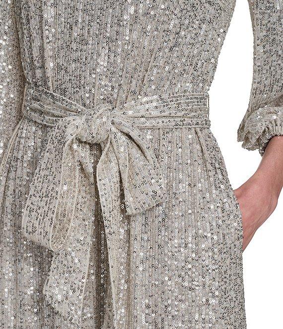 Eliza J Sequin Long Sleeves Belted Short Dress