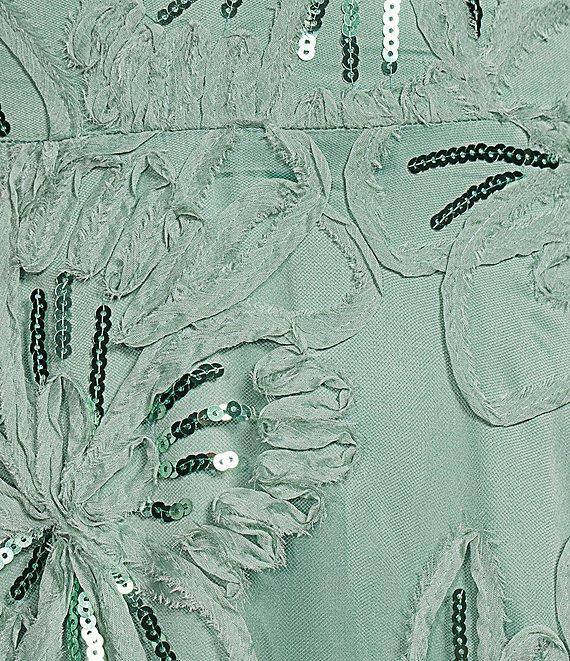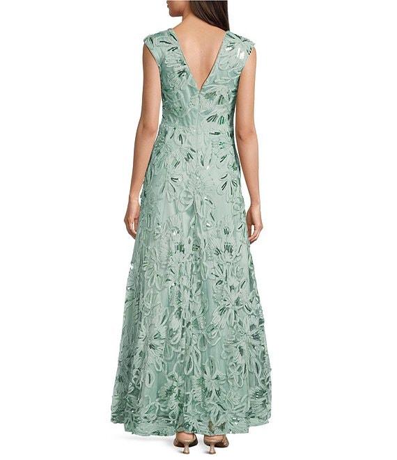 Eliza J Sequin Soutache V-Neck Cap Sleeve A-Line Gown