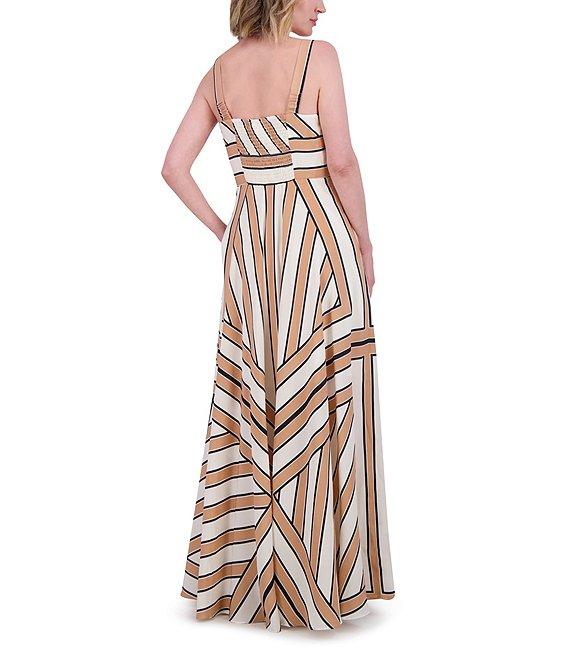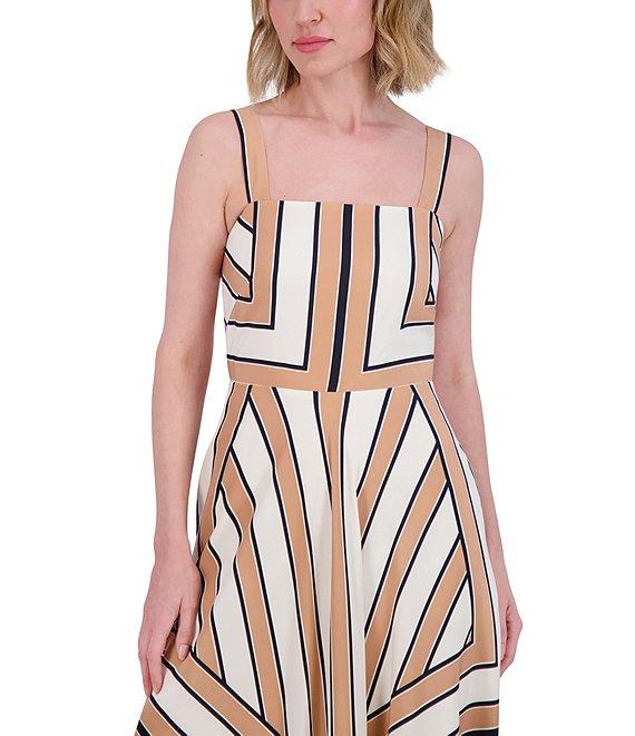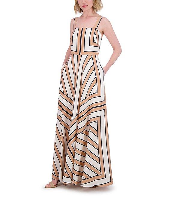 Eliza J Square Neck Sleeveless Stripe Scarf Print A-Line Maxi Dress