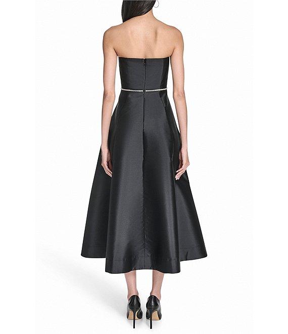 Eliza J Strapless Rhinestone Bow Sweetheart Neck Midi Dress