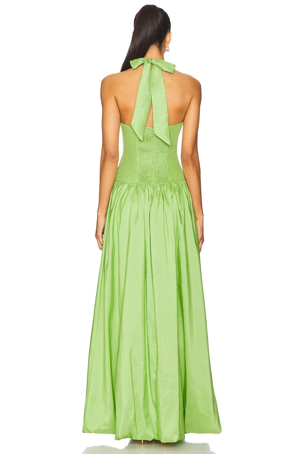 Self: 70% polyester, 30% nylonLining: 100% polyester. Made in USA of imported materials. Machine wash. Fully lined. Hidden back zipper closure. Halterneck styling. Midweight taffeta fabric. Revolve Style No. SHOW-WD791. Manufacturer Style No. MS5-6278.