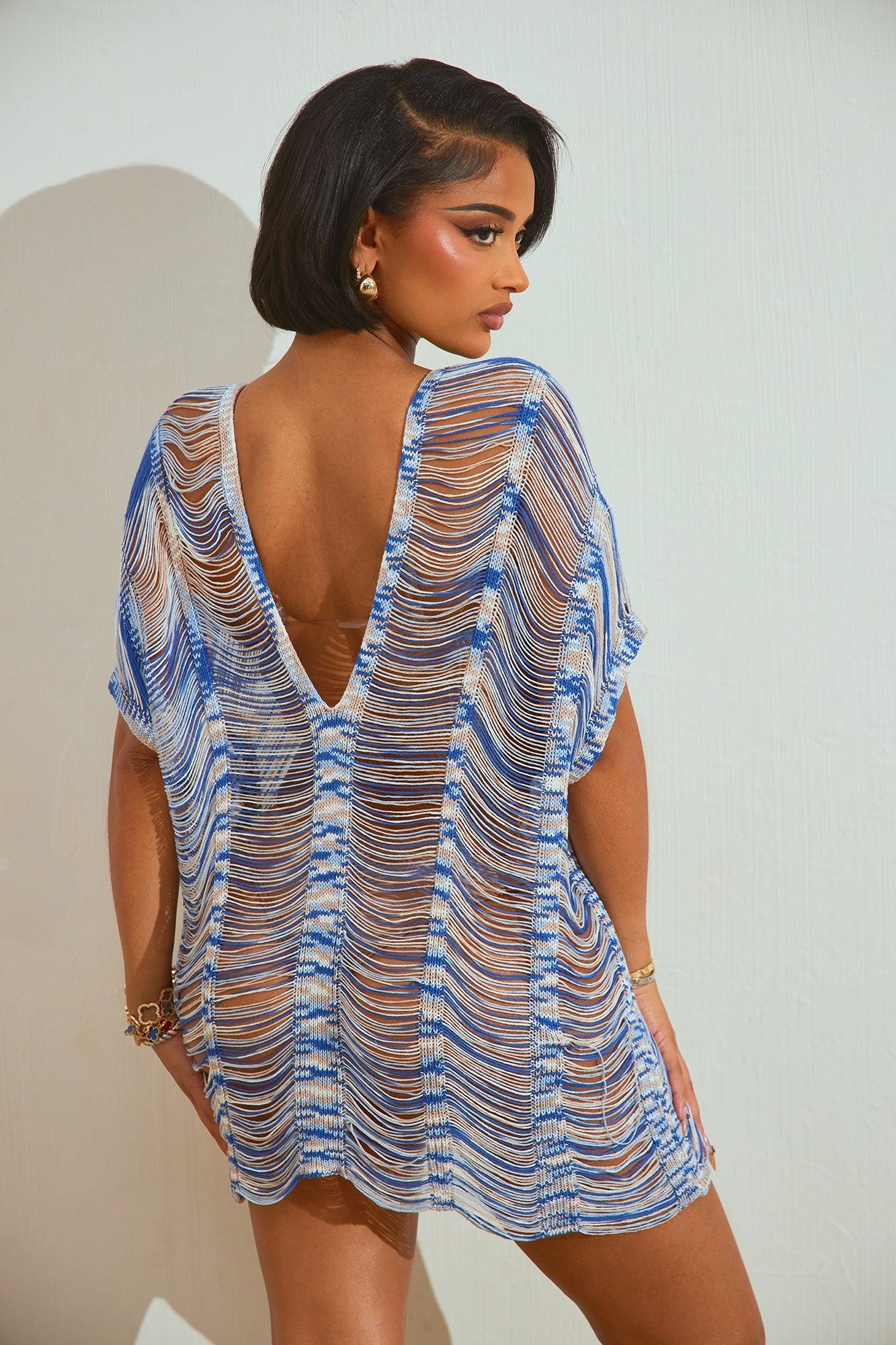 Elizabeth Crochet Cover Up Dress - Blue/combo