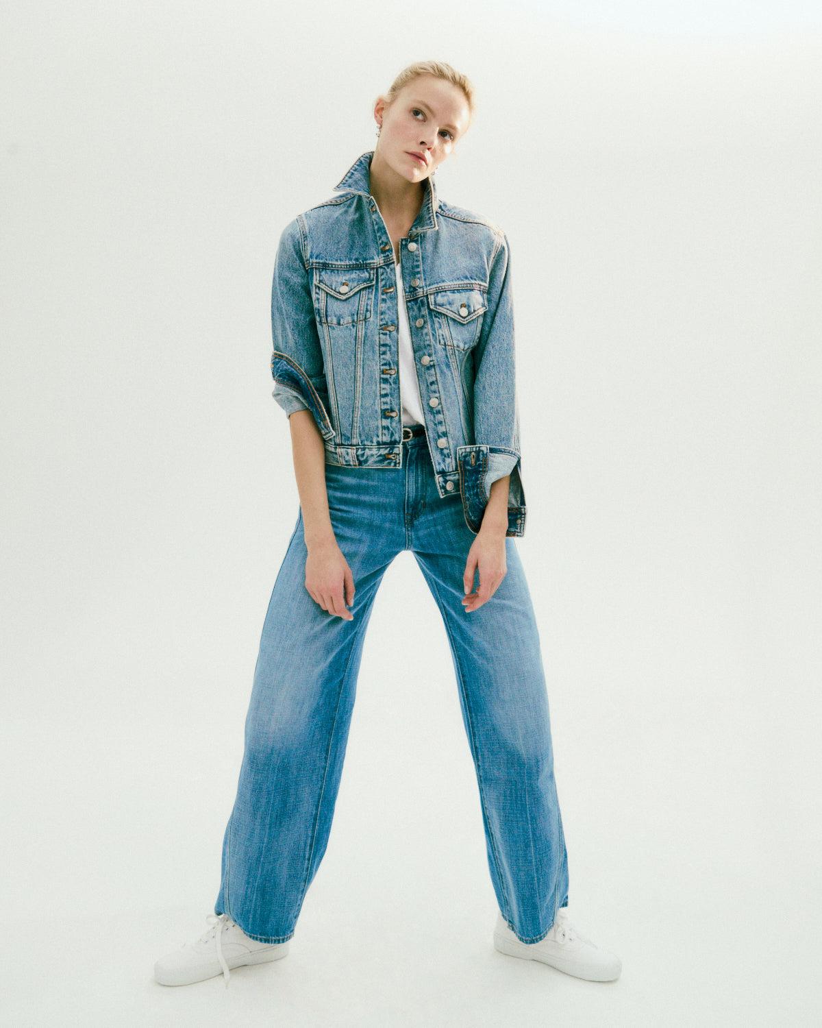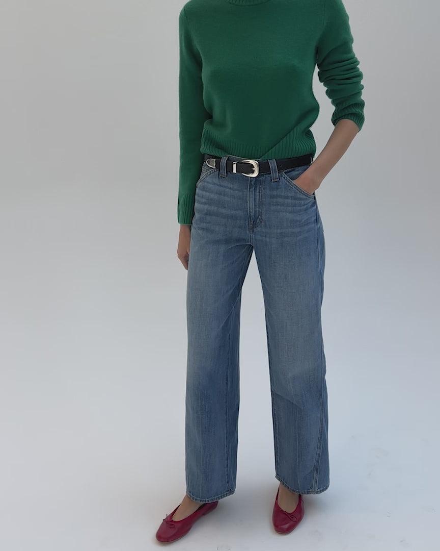 If you've been looking for cool jeans, these are the ones. 11 3/4” mid-rise 31” inseam Zip fly Subtly-curved arc legs 100% non-stretch, cotton denim Lili is 5'11" and wearing a size 27 Size 27 measures 30.5" around the waist and 41" around the hip. Front rise measures 11.5", inseam measures 31" and leg opening measures