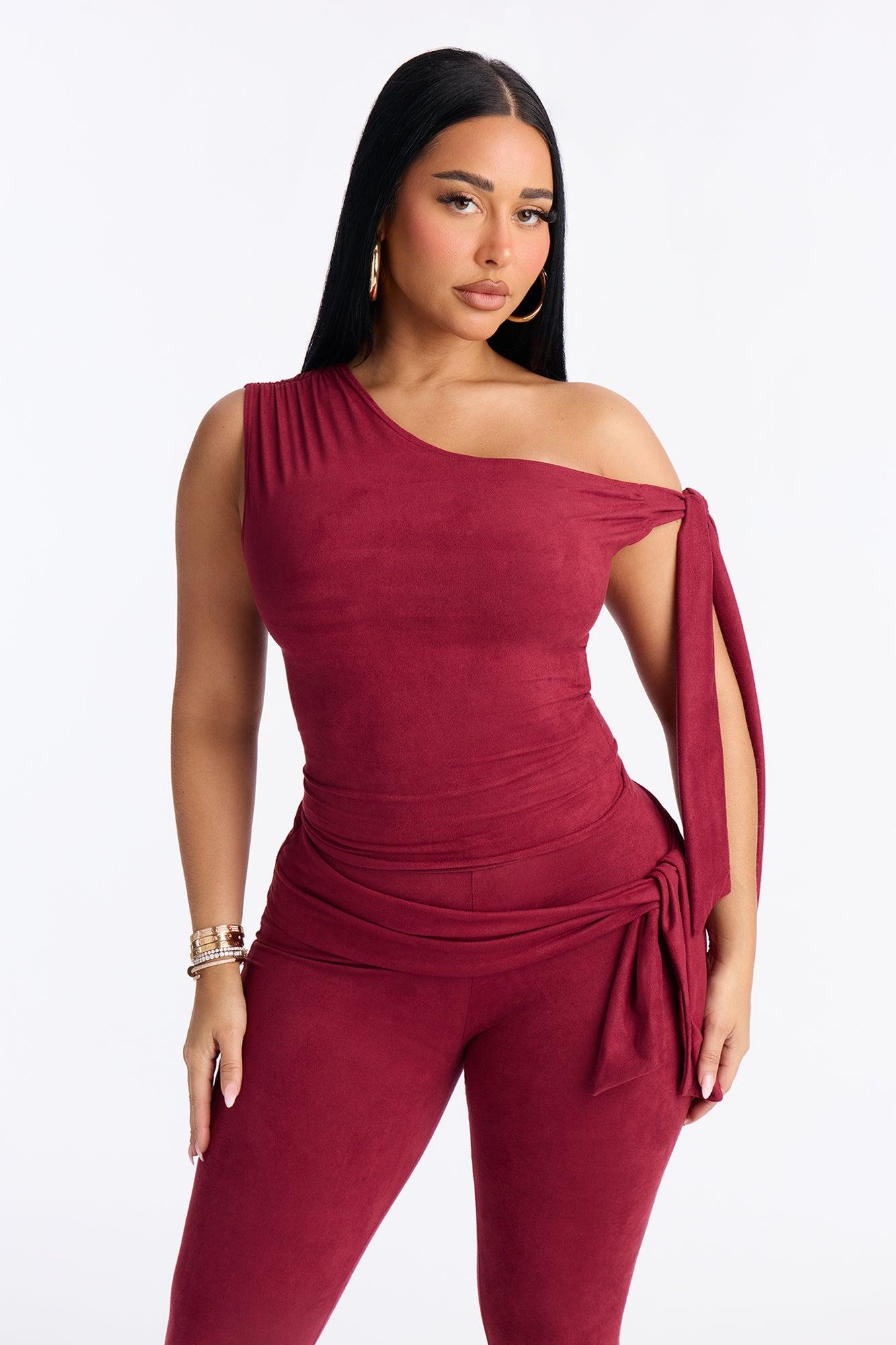 Ella Faux Suede Capri Set - Wine Female