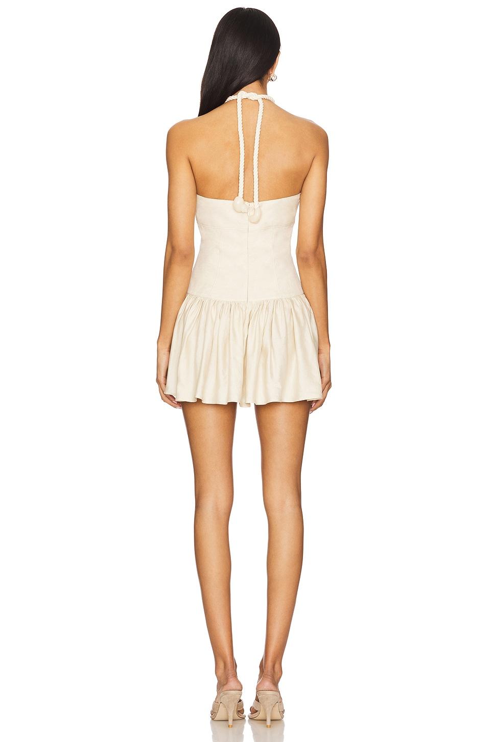 55% linen, 45% viscose. Dry clean only. Fully lined. Halterneck self-tieConcealed back zipper with hook and eye closure. Side pockets. Midweight linen fabric. Made in China. Revolve Style No. LPAR-WD885. Manufacturer Style No. LPD10030 U25.