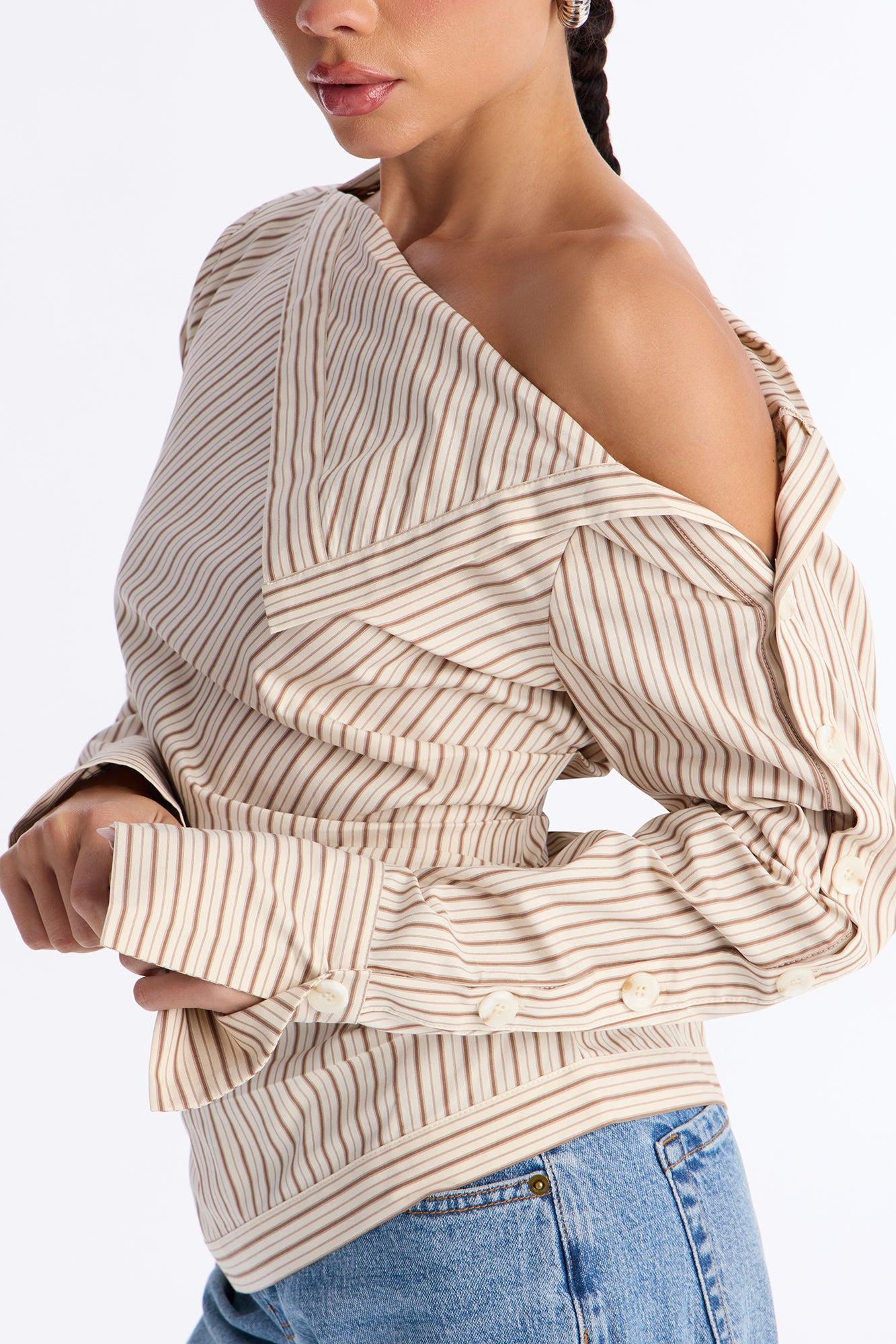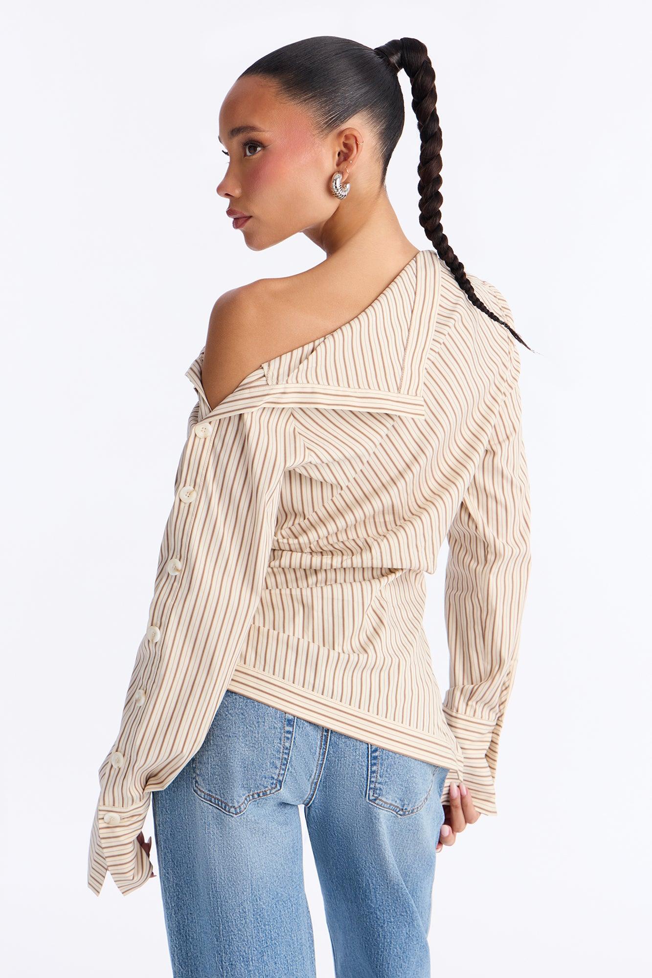 Ella One Shoulder Striped Poplin Top - Cream/combo Female