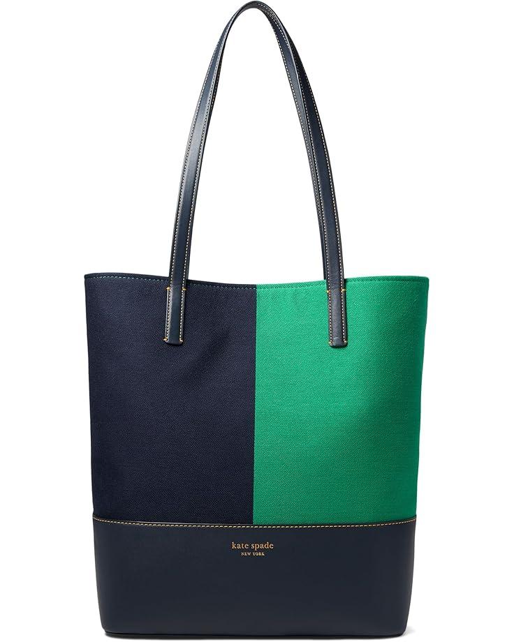 Evoke an inspired, fashion-friendly glance to your attire by carrying Kate Spade New York® Waverly Racing Stripe Jacquard Large Tote. This handbag is designed with a textile construction and a magnetic snap closure for quick and easy opening and closing. The bag has multiple interior pockets, such as two interior slip pockets, and one zippered interior pocket.
