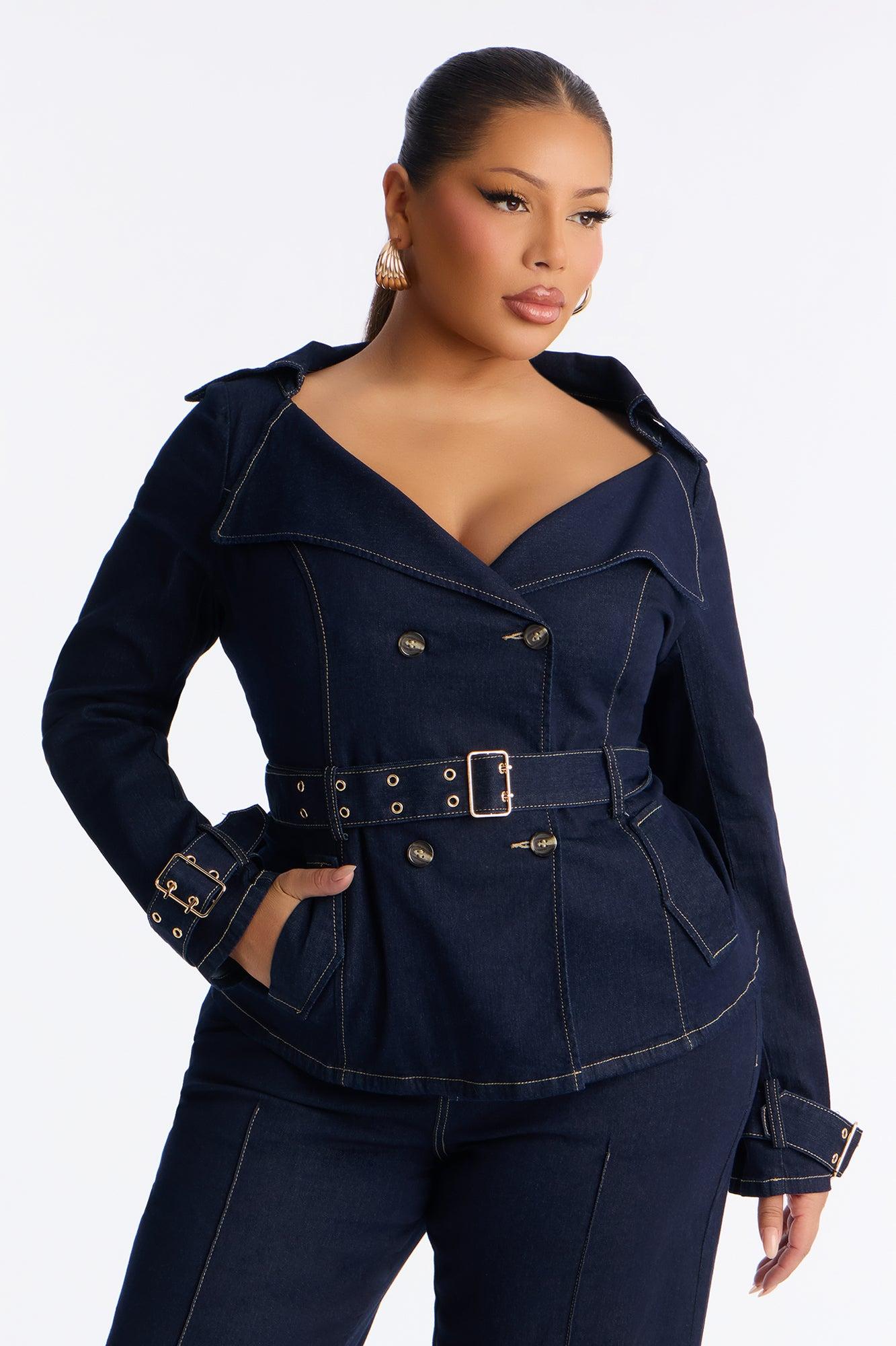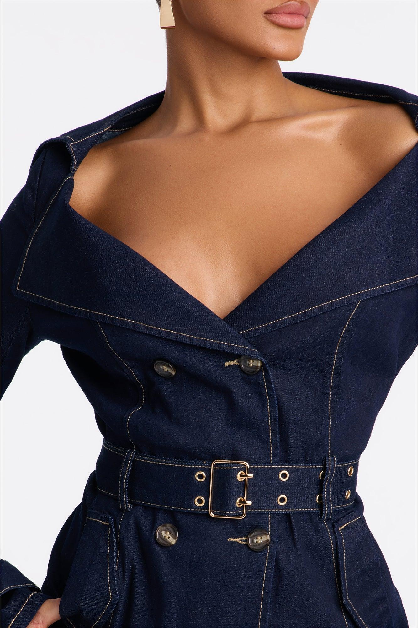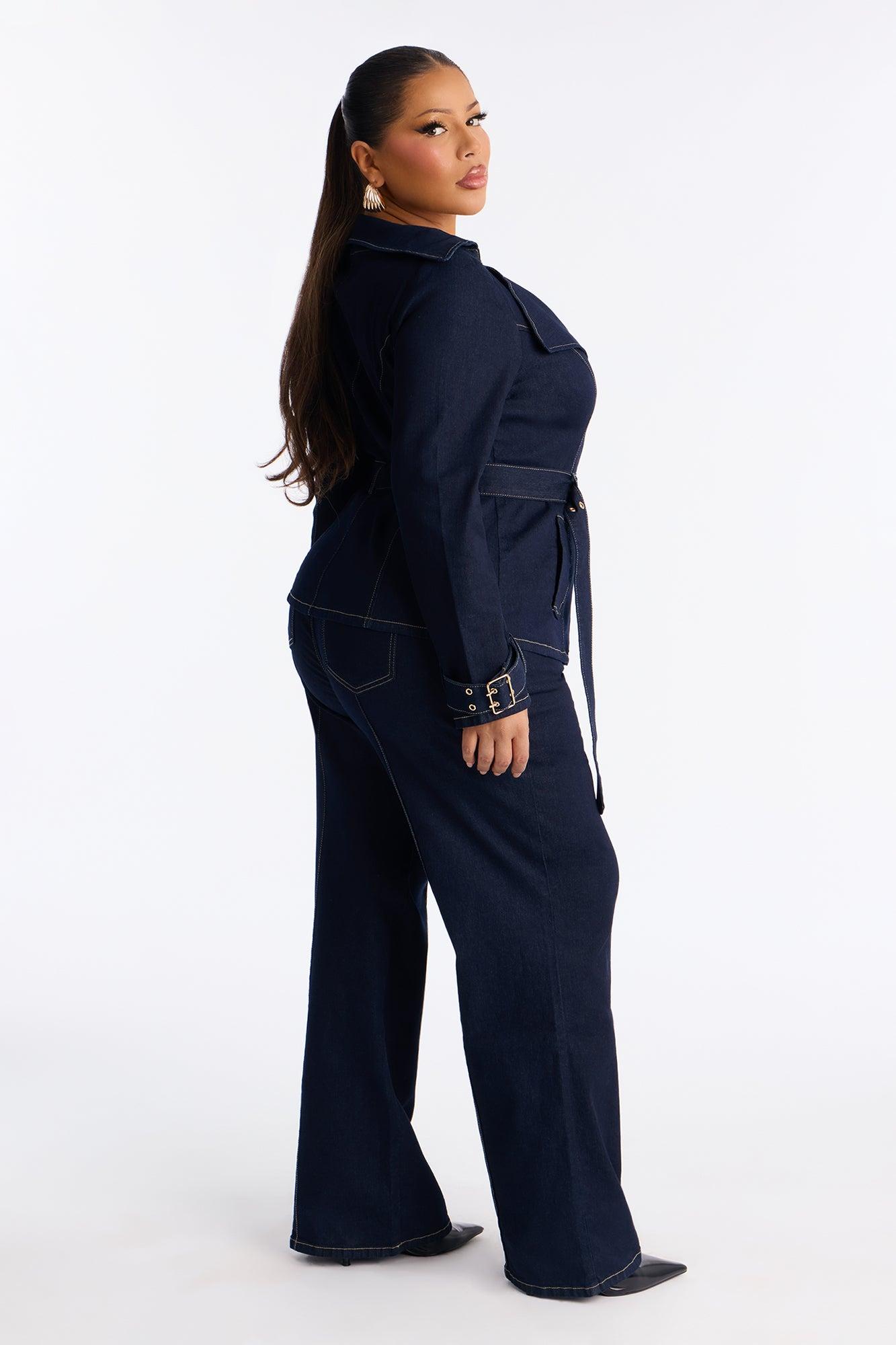 Ellanor Belted Trench Denim Pant Set - Dark Denim Female