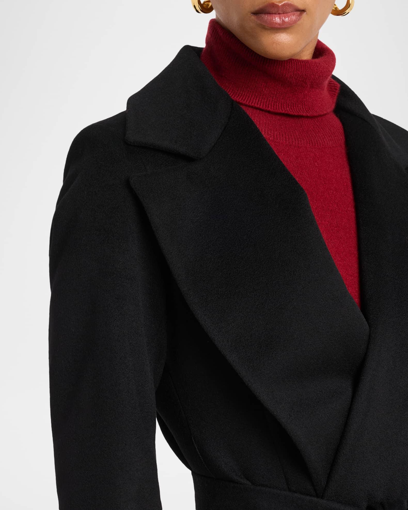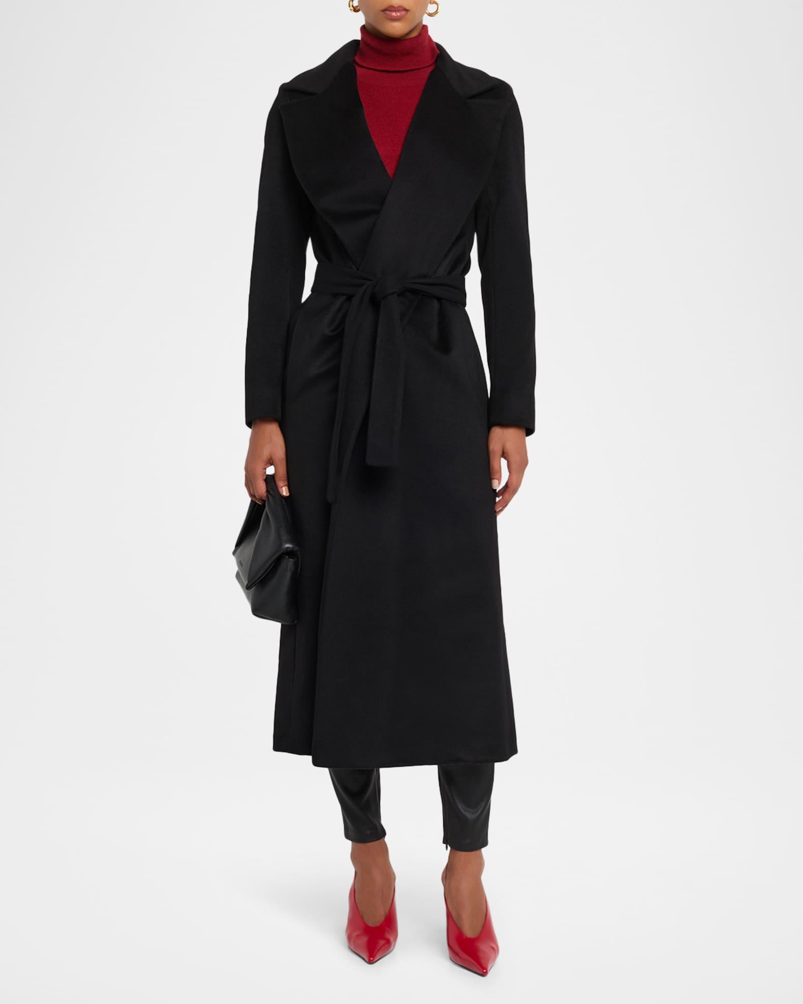 Made in America, the "Elle" wrap coat by Fleurette is crafted from luxurious cashmere and is designed to be a closet staple with high-quality construction. Wide notch collar Long sleeves Removable, adjustable self-tie belt Side seam pockets Relaxed fit Hem falls below the knee Walking vent Wrap closure Cashmere Lining: Acetate Dry clean Made in USA from imported materials
