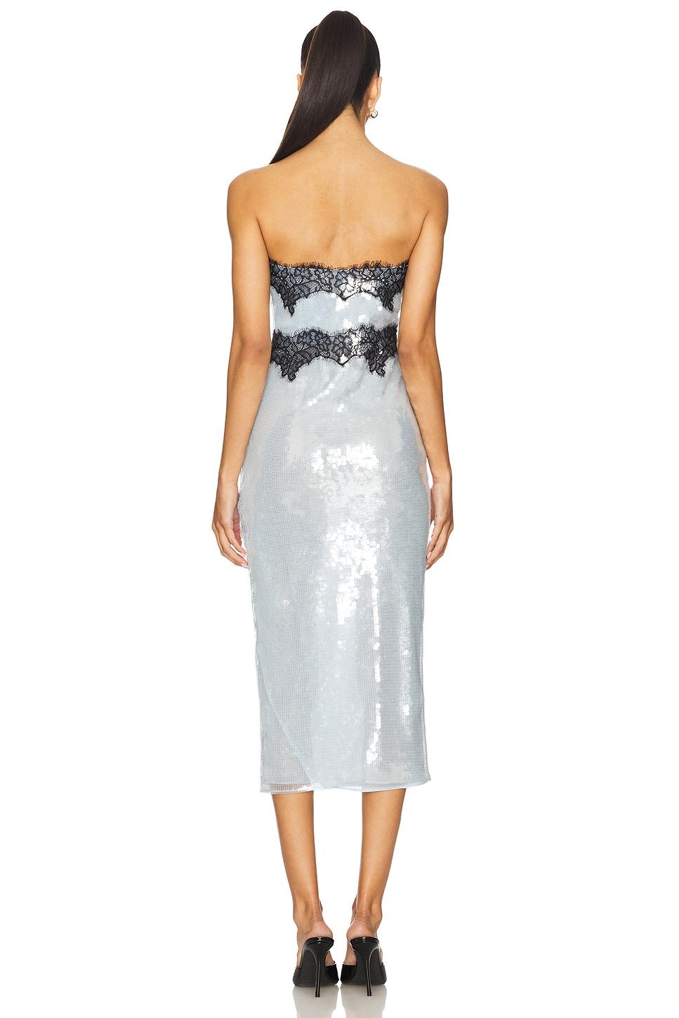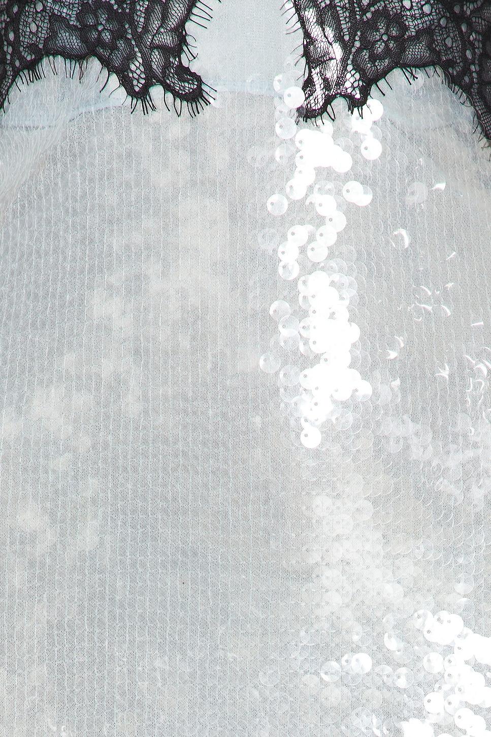 Self & Lining: 100% polyesterTrim: 100% nylonContrast Fabric: 97% polyester, 3% spandex. Hand wash cold. Fully lined. Concealed side zipper with hook and eye closure. Lace trim. Midweight sequin-embellished fabric. Neckline to hem measures approx 41" in length. Made in China. Revolve Style No. ROFR-WD972. Manufacturer Style No. PF24-9510.