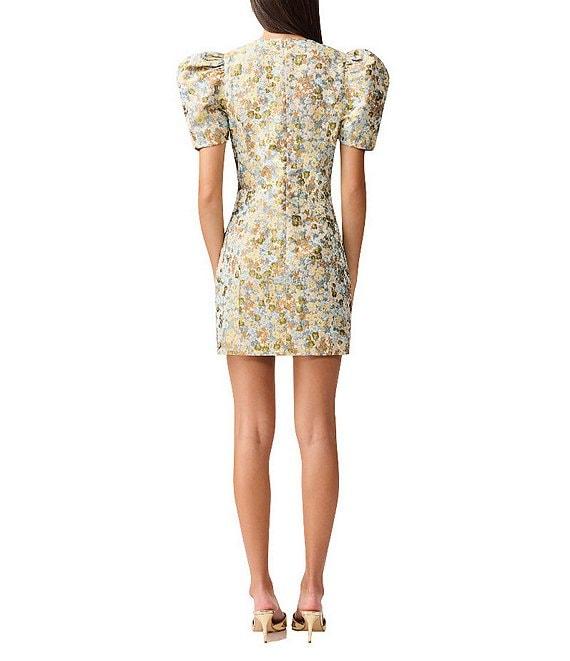 ELLIATT Tasmin Floral Jacquard Round Keyhole Neck Short Puff Sleeve Mini Dress