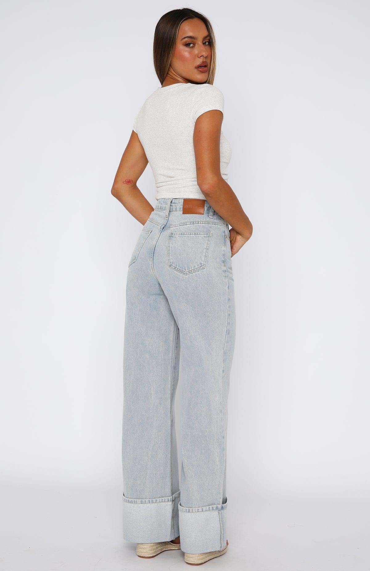 Take your style to new heights with Ellie High Rise Wide Leg Jeans in Glacier Blue! Features button and zipper closure centre front, belt buckle holes, 5 pocket design, Faux leather White Fox label side back and folder up fabrication on leg bottom. Complete the look with your warmest knitwear pieces or tank for warmer days. 100% Cotton Dekota is 172cm & wears a S Mik is 171cm & wears a S