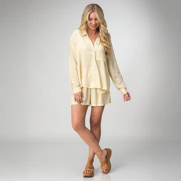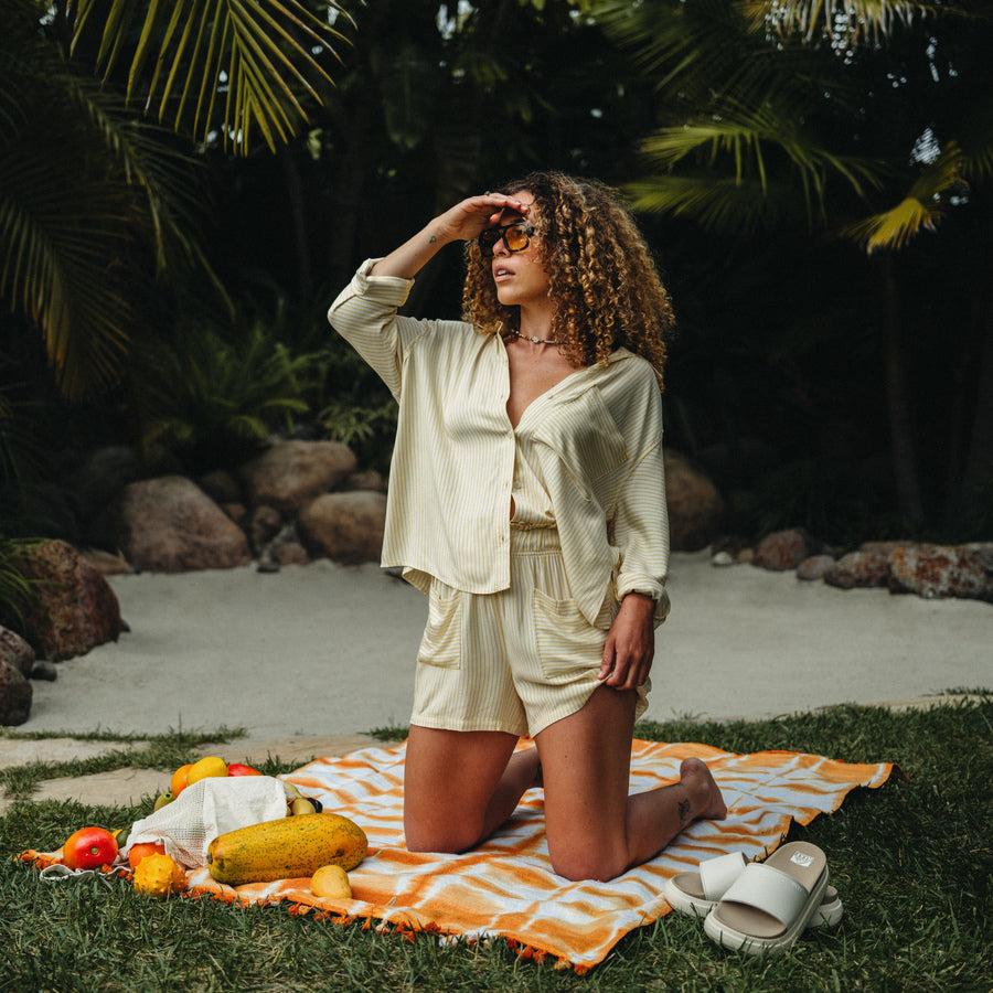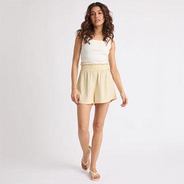 These easy pull-on shorts feature an elasticated waistband with paperbag details. The Ellie short has yarn-dyed stripes woven into the soft, drapey fabric. With a 3” inseam and relaxed fit, they’re your perfect companion for breezy days by the water or casual strolls around town.