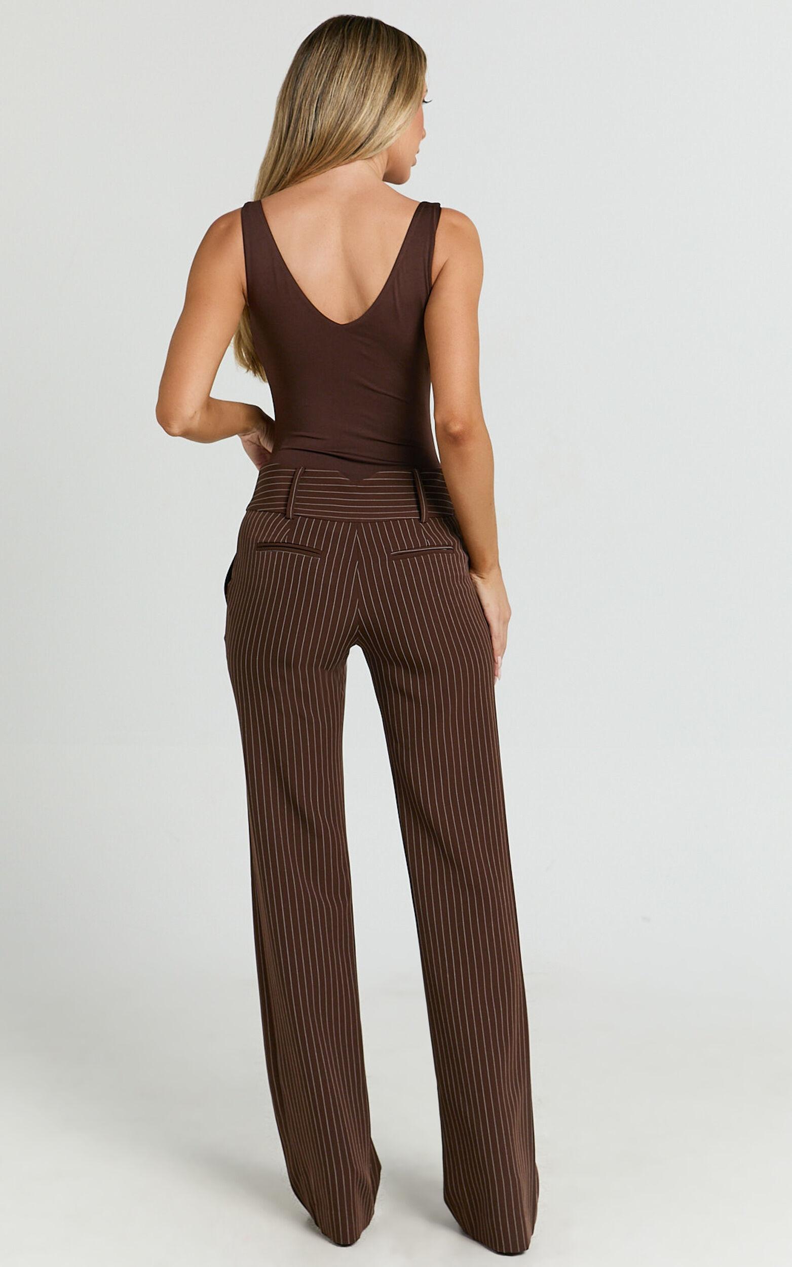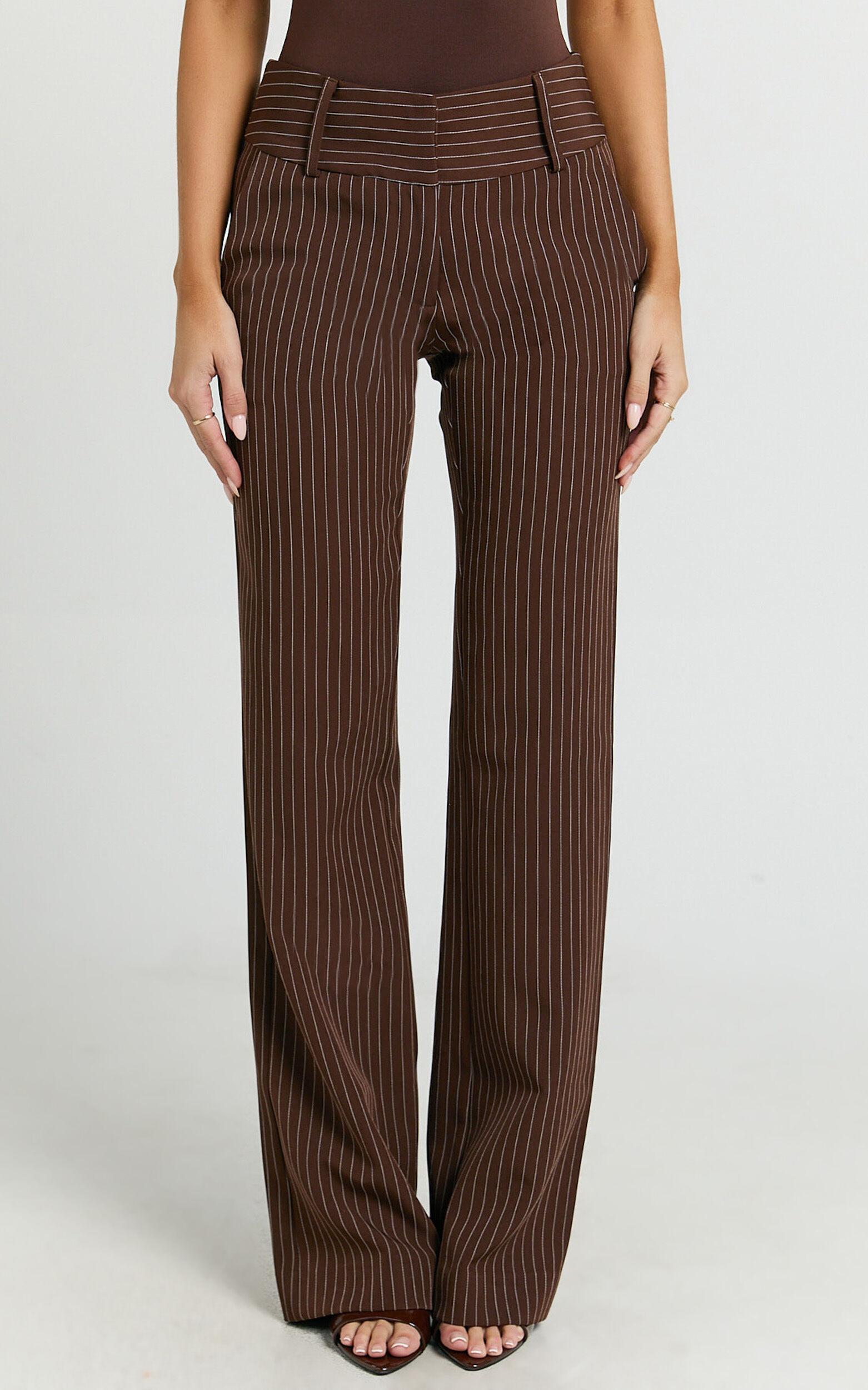 Step up your party day looks with the Elliot Pants – Mid Rise Pinstripe Bootleg Pants in Brown Stripe. Designed for the modern woman, these full length tailored pants bring the perfect blend of polished style and all-day comfort. Crafted from mid-weight woven polyester, they offer a flattering mid rise fit and a classic bootleg silhouette that elongates your legs and moves with your every stride.Product Details:Tailored party pantsFull length fitZips and pocketsInner lining comfortMid-rise waistMid weight wovenMade from polyesterSize and FitSize S / 8 length: 112cm / 44.09inMaterial and CareLining: 90% Polyester, 10% Spandex Main Fabric: 94% Polyester, 6% SpandexLow / No stretch