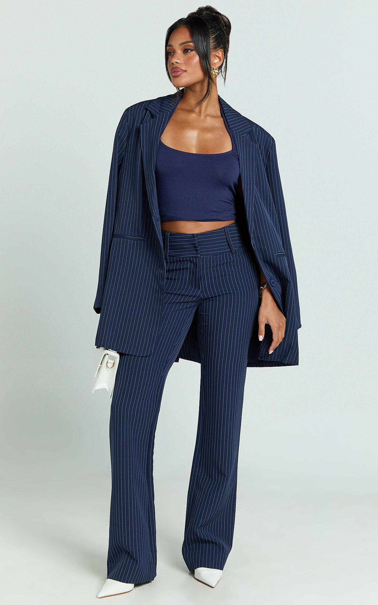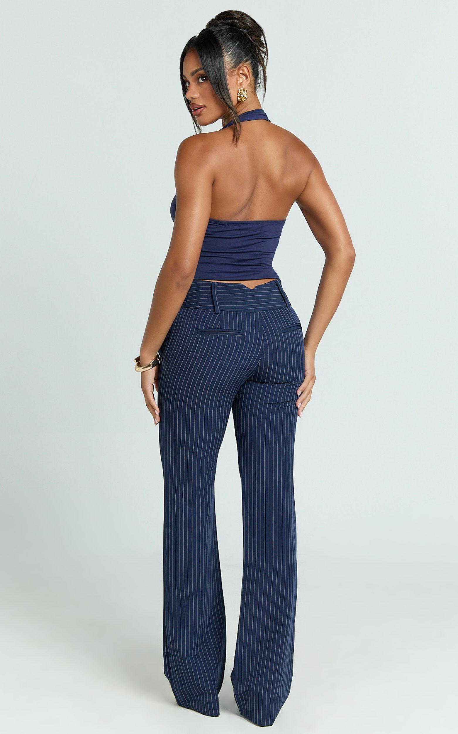 Discover the perfect look in our Elliot Pants - Mid Rise Pinstripe Bootleg Pants in Navy. These full-length tailored pants are more than just clothing; they're a statement of style and empowerment for every woman ready to stand out. Crafted from mid-weight woven polyester, they strike the perfect balance between comfort and elegance, ensuring you look sharp from day to night.Product Details:ZipsPocketsInner LiningTailored PantsMid Weight WovenPolyesterParty DayFull LengthMid WaistSize and FitSize S / 8 length: 112cm / 44.09inMaterial and CareLining: 90% Polyester, 10% Spandex Main Fabric: 94% Polyester, 6% SpandexLow / No stretch