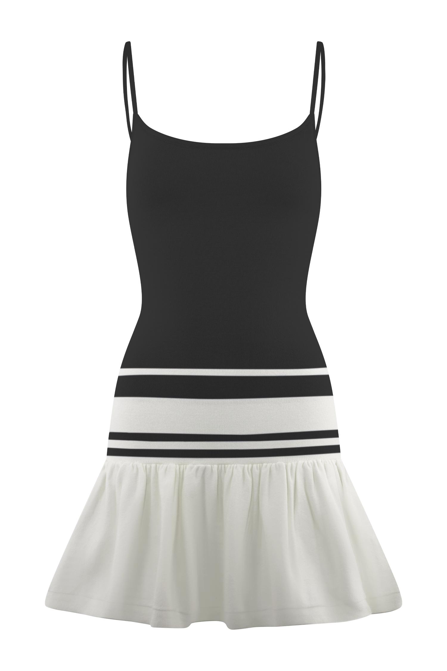 The kind of mini you’ll live in. The ELLISON Contrast Knit Mini Dress is your go-to for flirty, fun styling with a modern twist. Featuring a scoop neckline and striking back cross-strap detail, this fitted silhouette hugs the body before flaring into a frilled lower skirt. Bold contrast stripe detailing adds a graphic edge, while the unlined knit keeps it light, breathable, and ready for warm-weather days. this dress is perfect for weekend plans, sunlit strolls, and everything in between.